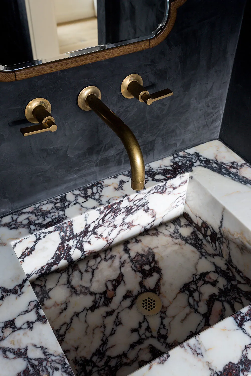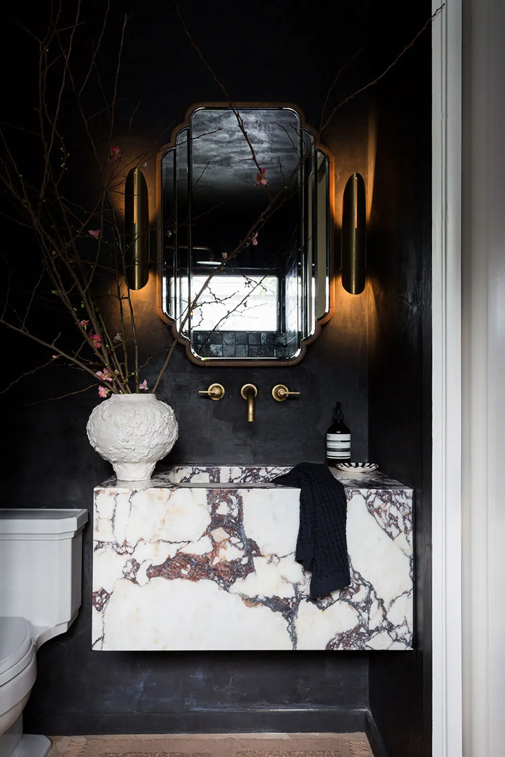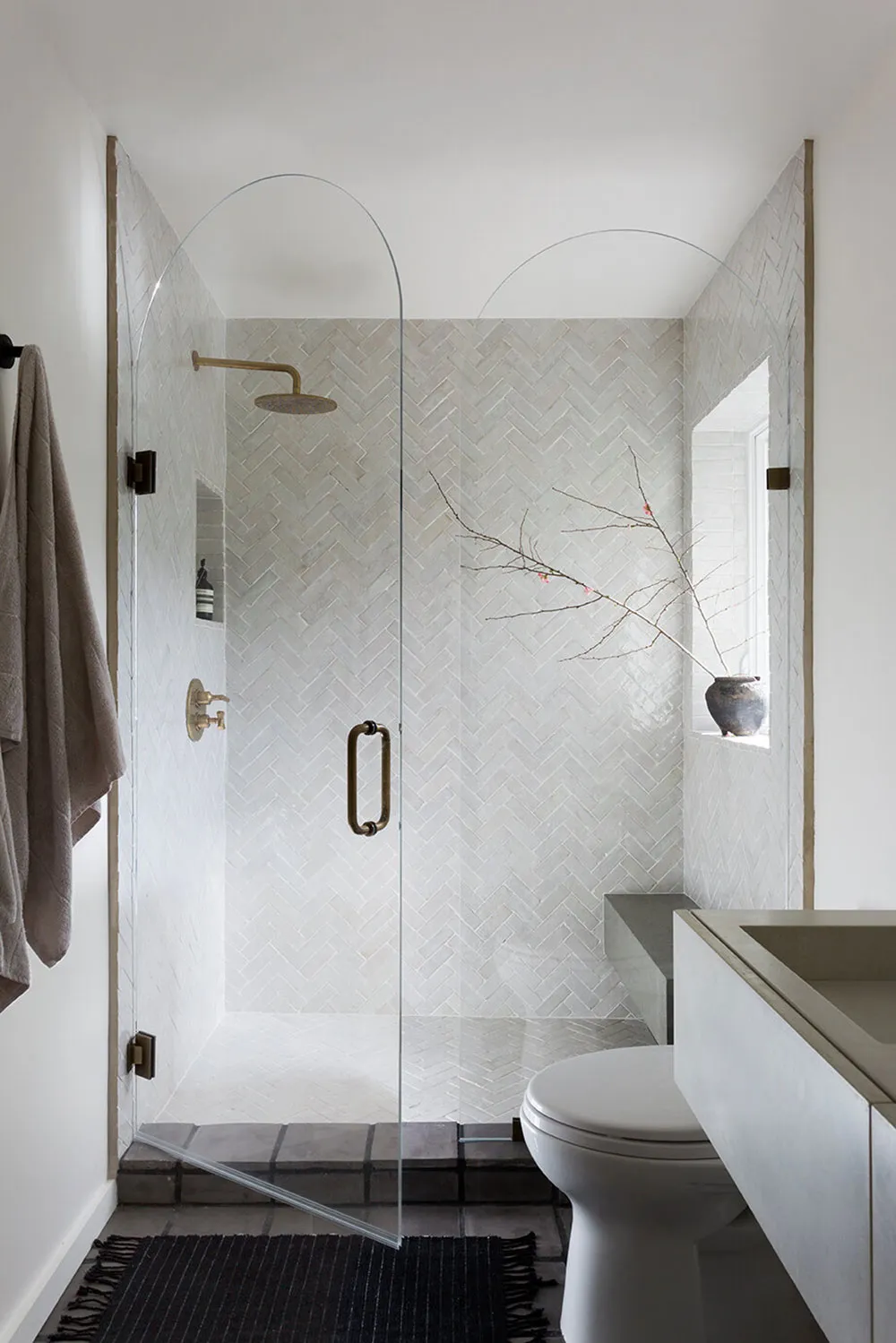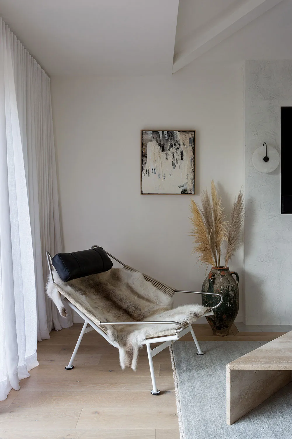 Weißer Interior mit warmen Akzenten und schönen Marmor in Kalifornien