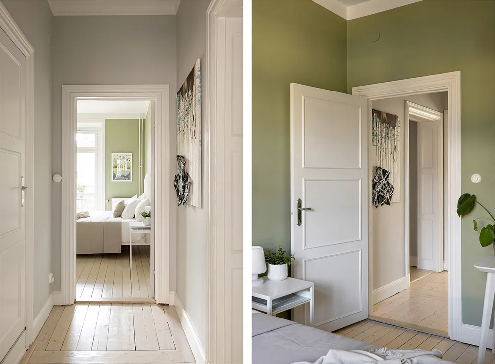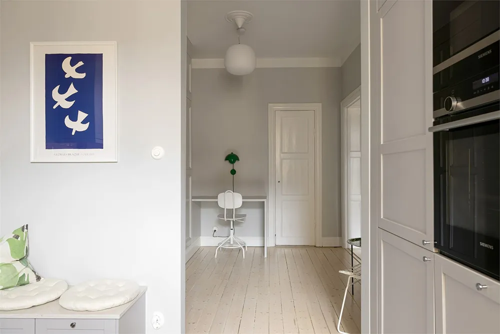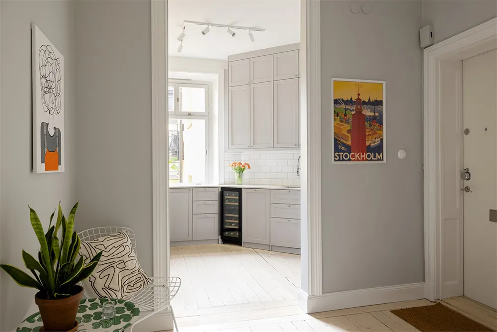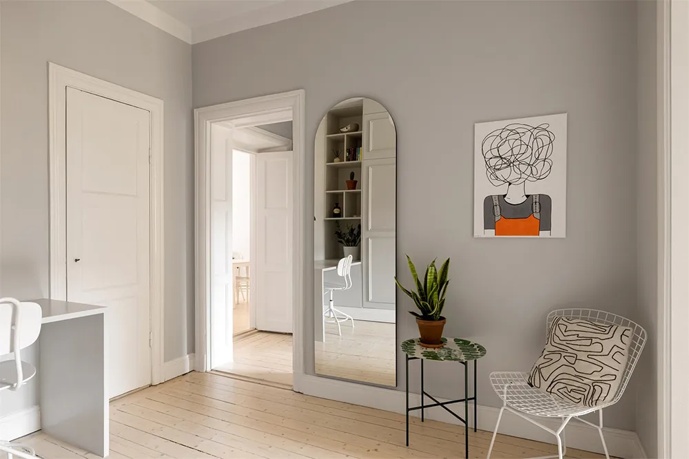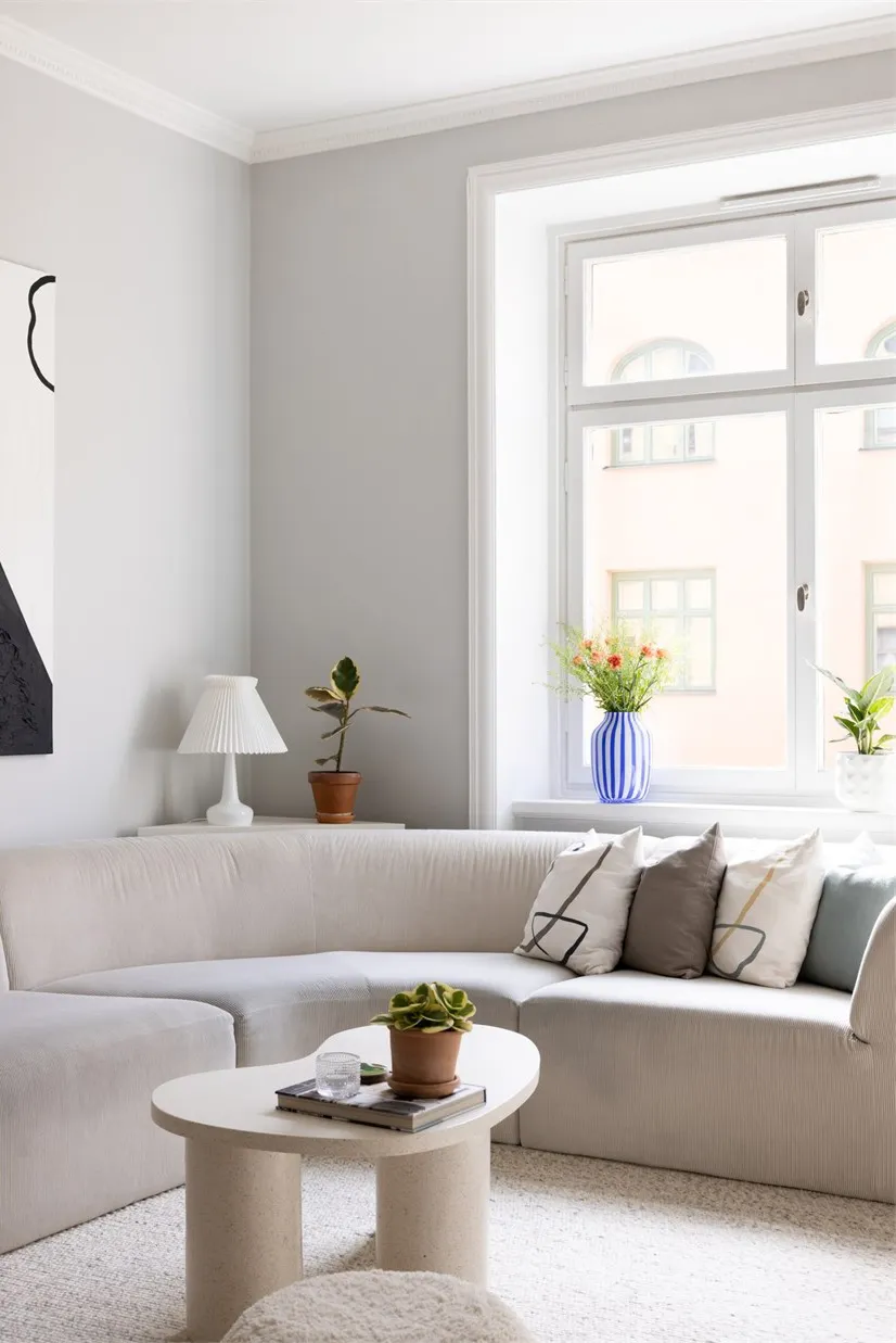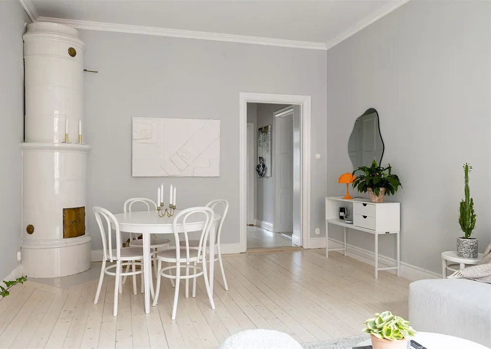 Designsofa und kühle Pastelltöne: Ungewöhnliche skandinavische Wohnung (73 qm)