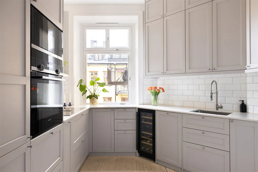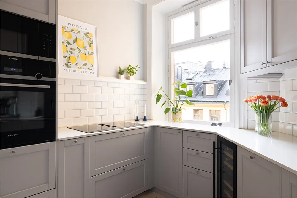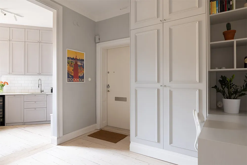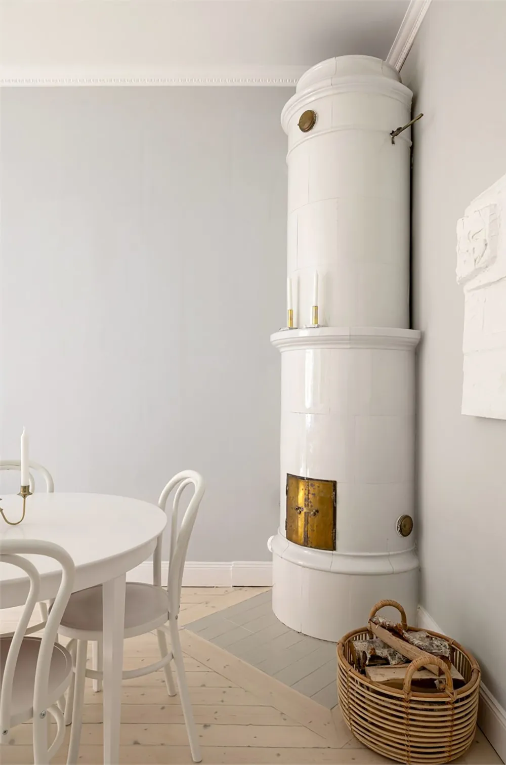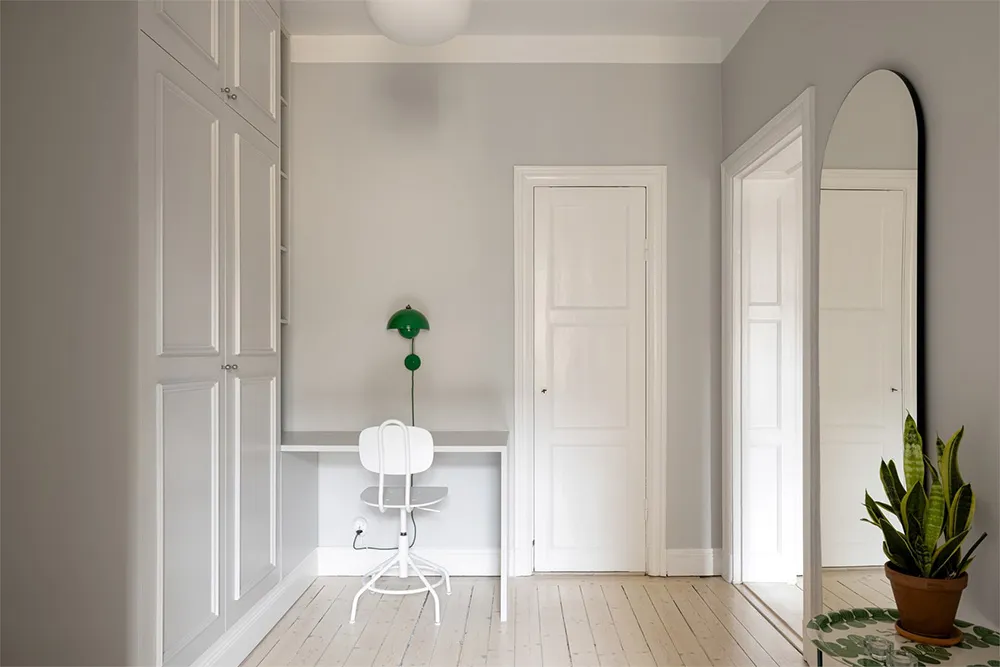 Designsofa und kühle Pastelltöne: Ungewöhnliche skandinavische Wohnung (73 qm)