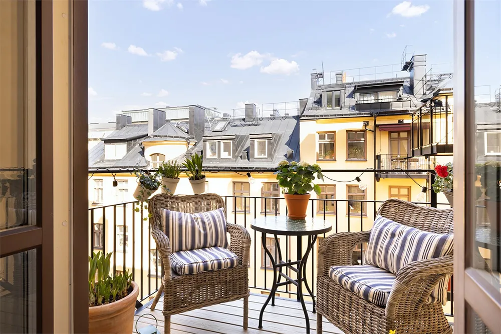 Oranger Sofa und retro Akzente: Atmosphärischer Interieur in Stockholm