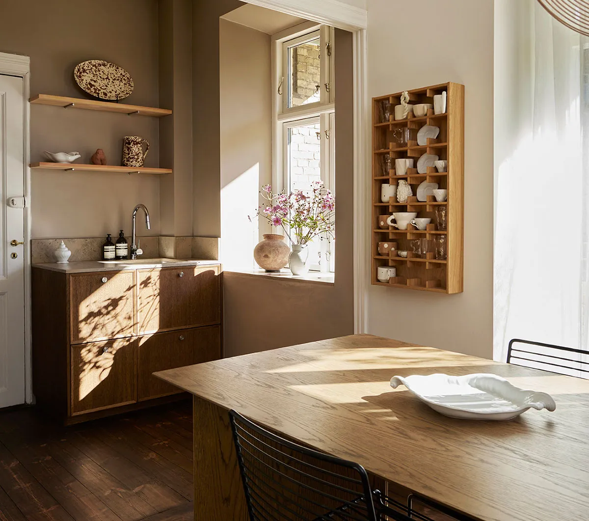 Wärme natürlicher Materialien in der kleinen Wohnung eines Designers in Dänemark