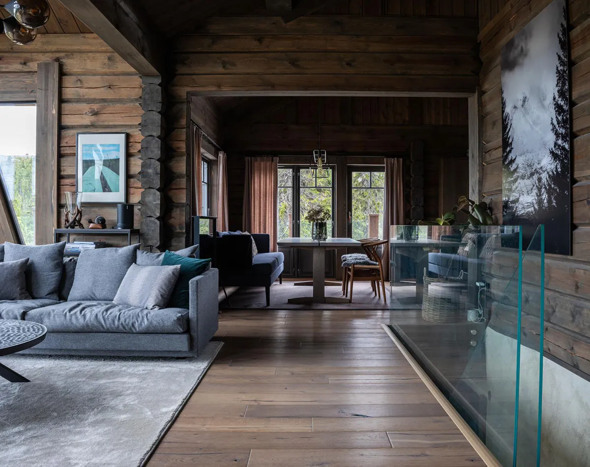 Hölzerner Holzhütte in Schweden mit stylischen Interiern