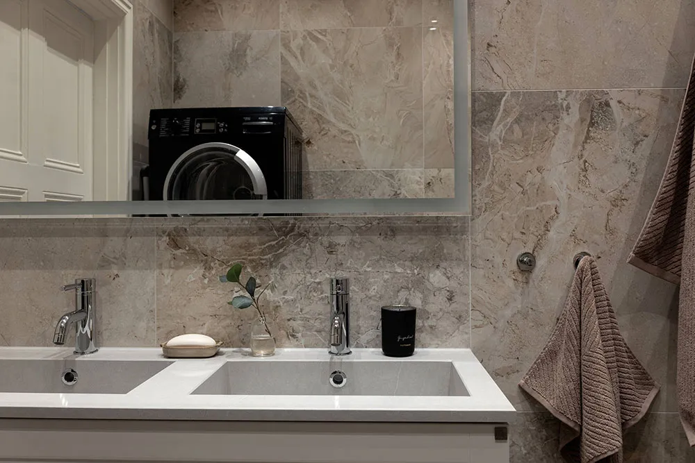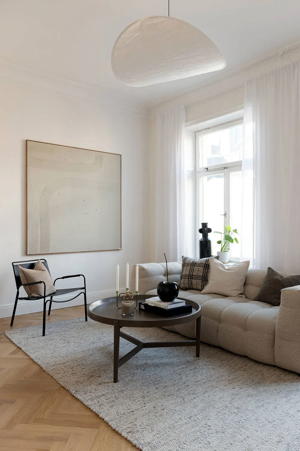 Eleganter skandinavischer Interior in angenehmen neutralen Tönen (71 qm)