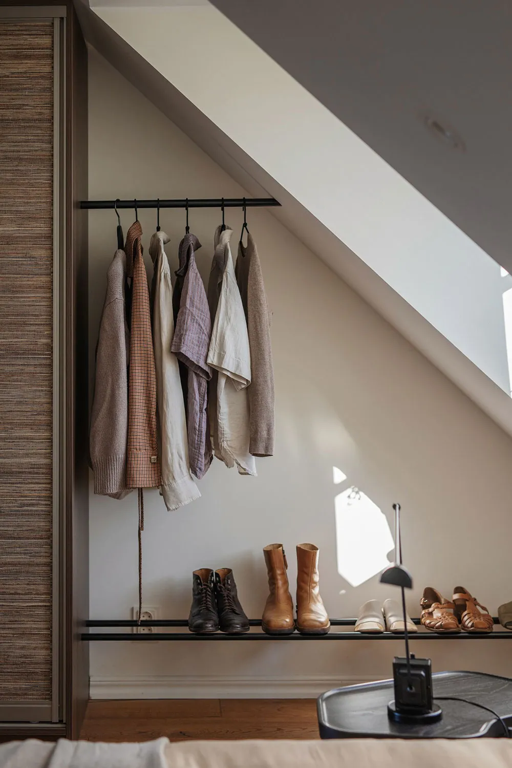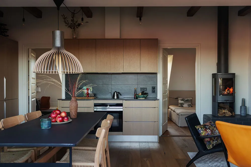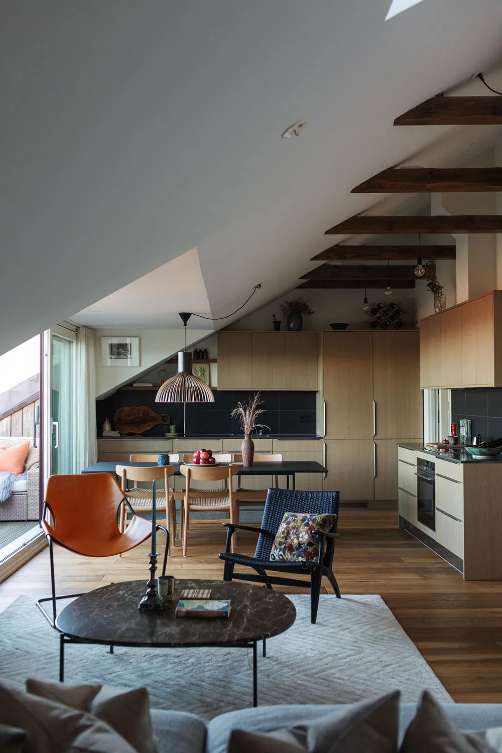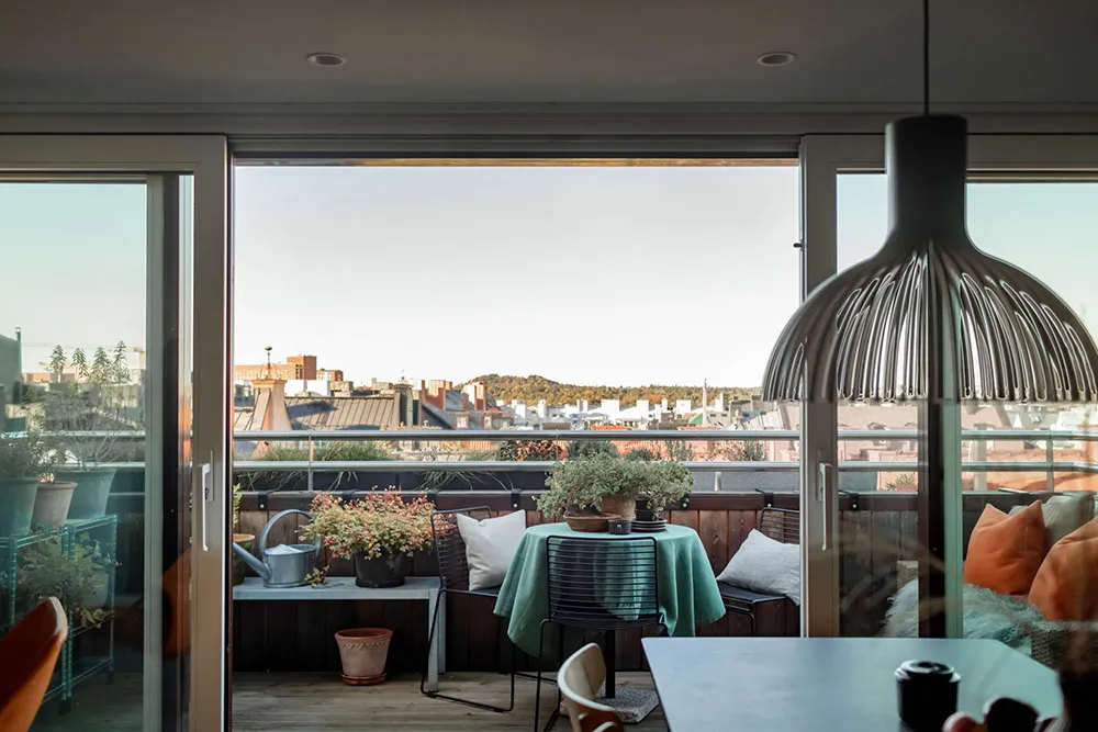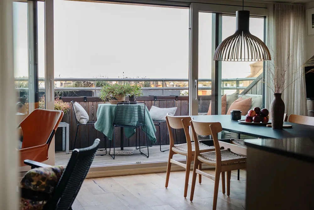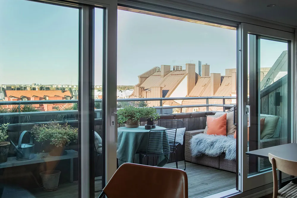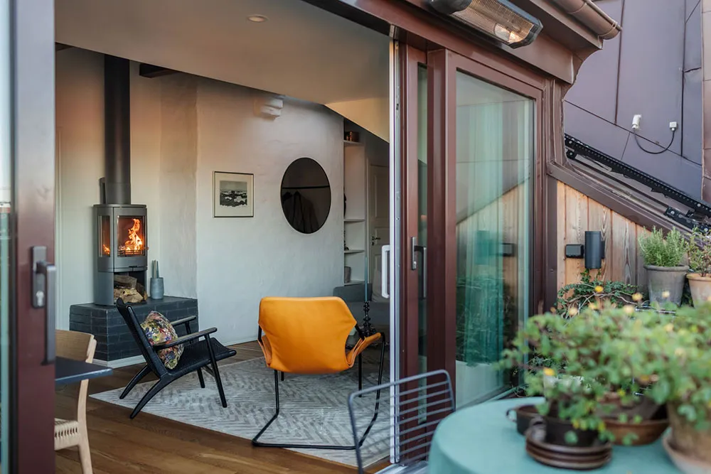 Diese Dachstockwohnung befindet sich unter der Dachdecke eines 100-jährigen Hauses in Stockholm, wobei ihre Fenster auf beide Seiten blicken. So können die Eigentümer fast den ganzen Tag von den Sonnenstrahlen geniesen.
