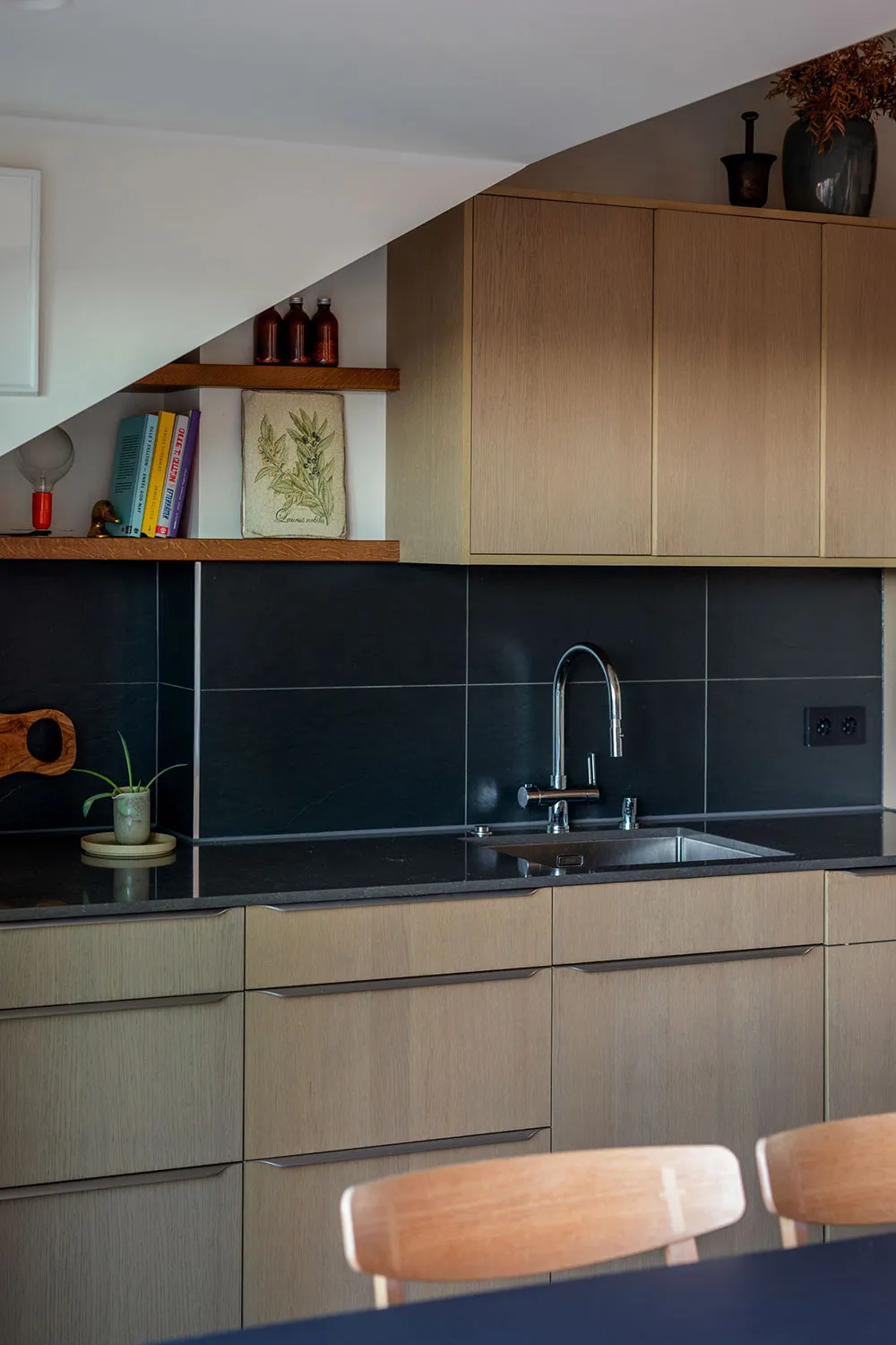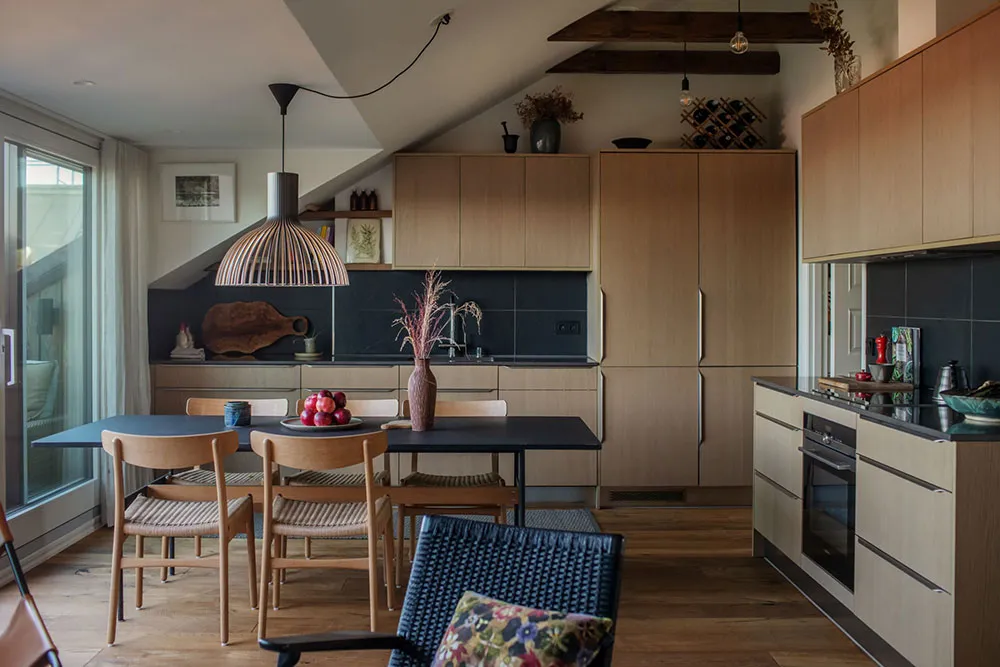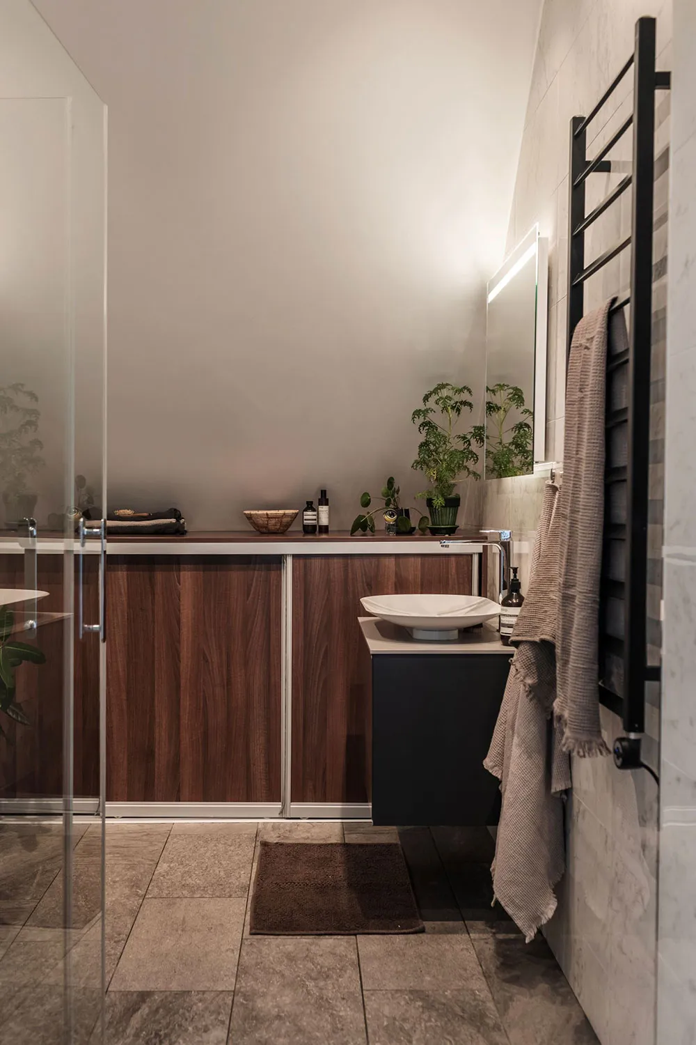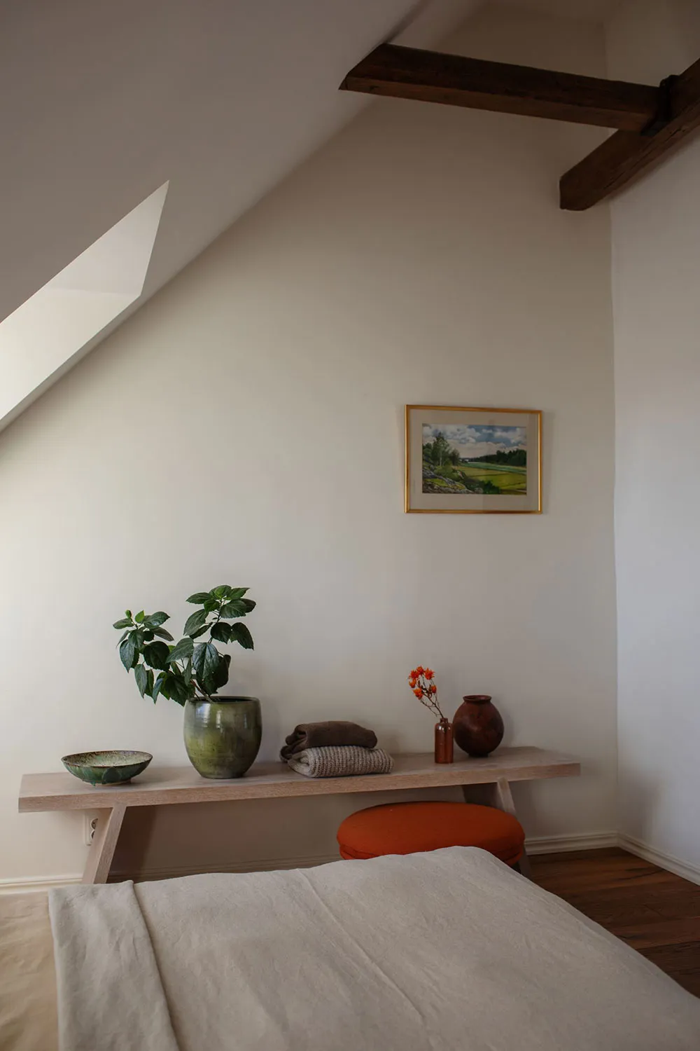 Diese Dachstockwohnung befindet sich unter der Dachdecke eines 100-jährigen Hauses in Stockholm, wobei ihre Fenster auf beide Seiten blicken. So können die Eigentümer fast den ganzen Tag von den Sonnenstrahlen geniesen.