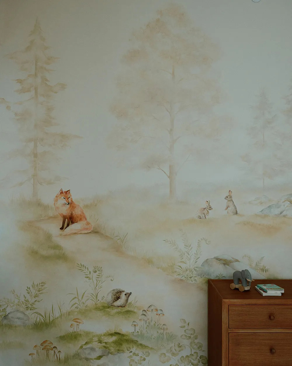 Spielerische Muster und Bücher in der Einrichtung eines Wohnhauses aus der Vorzeit in Warschau