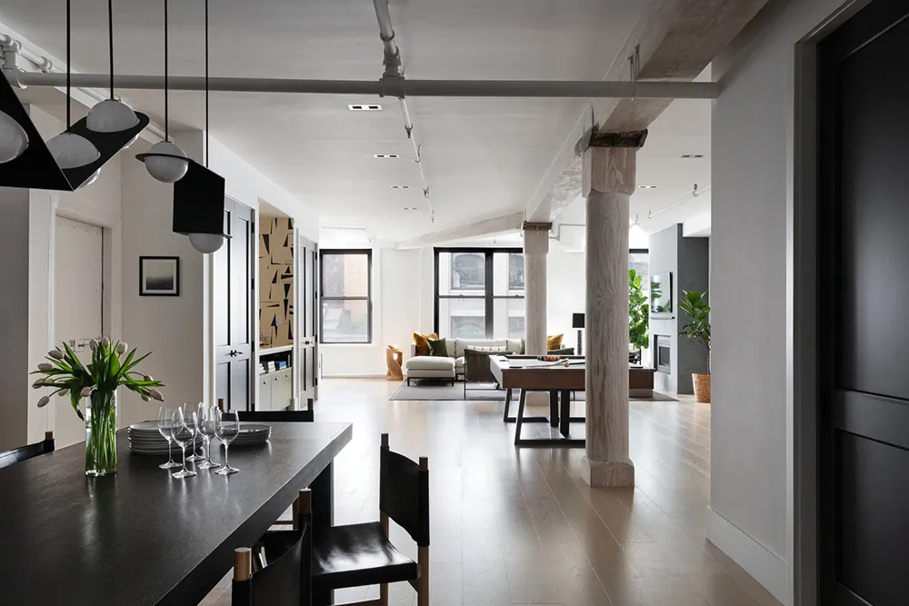 Als die aktuellen Besitzer das erste Mal in diesen Loft in einem prestigeträchtigen Viertel von New York kamen, begeisterte sie sofort der originelle industrielle Raum und die Flexibilität im Design – das Interieur war ein reiner Leerraum mit vielen Möglichkeiten.