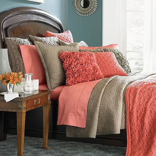 Coral color is a blend of various shades from pink-red to red-orange. It is a very beautiful color, though quite complex in its diversity. Coral is less bold than red or orange, it does not tire or strain the eyes. At the same time, it is not as doll-like as pink. Coral can be vivid and bright or muted and soft, almost peach-colored. Fashion designers constantly experiment with shades of this color, giving us a canvas for imagination. With its help, you can add a vibrant touch to the interior, bring joy or sophistication to the room. Ah, coral! The color of warmth, comfort, and energy!