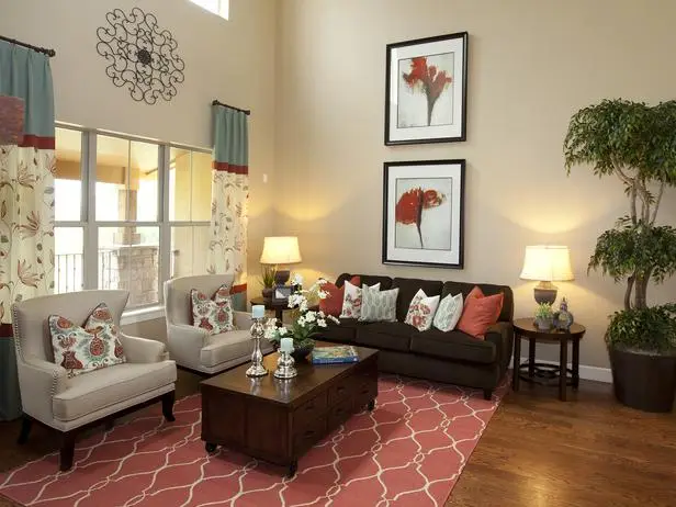 It looks very beautifully and stylishly when coral is combined with brown and caramel shades. Using a combination of these colors can create a classic and stylish interior design. Thanks to coral elements, the interior will not look boring. If you add cream, blue or white shades as well, you won't want to leave such a cozy room.