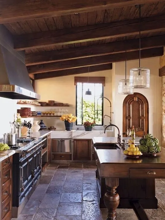 PinterestBlack walls and wooden finishes have long been favored by interior designers, especially in hallways and living rooms. Now our affinity for dark tones extends to the kitchen where cabinets undergo a reimagining in deep blue and black, creating an enchanting and theatrical atmosphere. Enhance this look with dark wooden accents and veined marble for an elegant appearance that conveys grandeur, not gothic style.