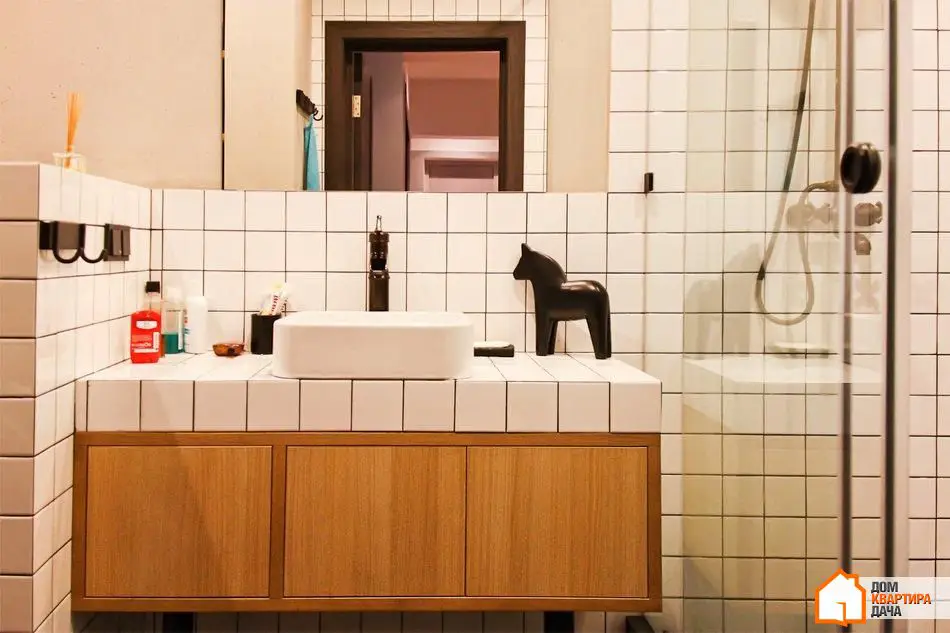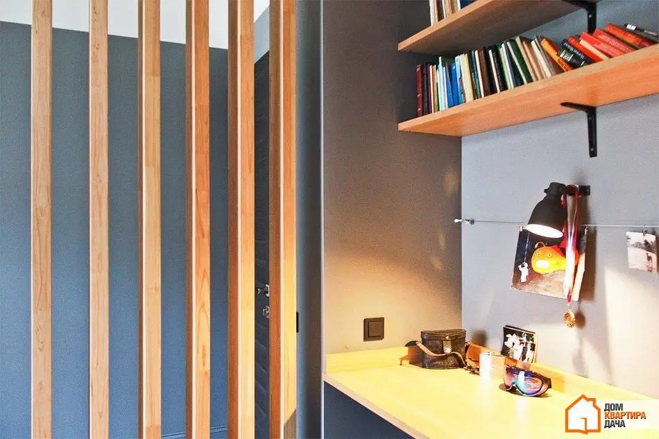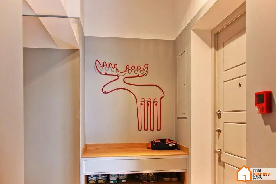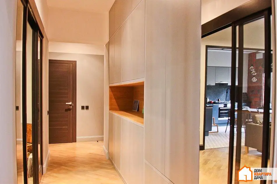 For storing personal items, a special cabinet was organized in the corridor between load-bearing columns. Learn more about how this interior was designed.