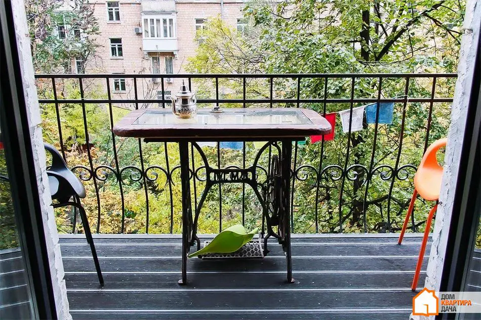 The furniture in the bedroom, office, bathroom, and corridor was custom-made. The dining table was also produced to individual dimensions. Initially, we planned to find chairs for the kitchen at flea markets, but in the end, we opted for new branded models instead. The base of the balcony table was made from an old sewing machine left by the previous apartment owners.