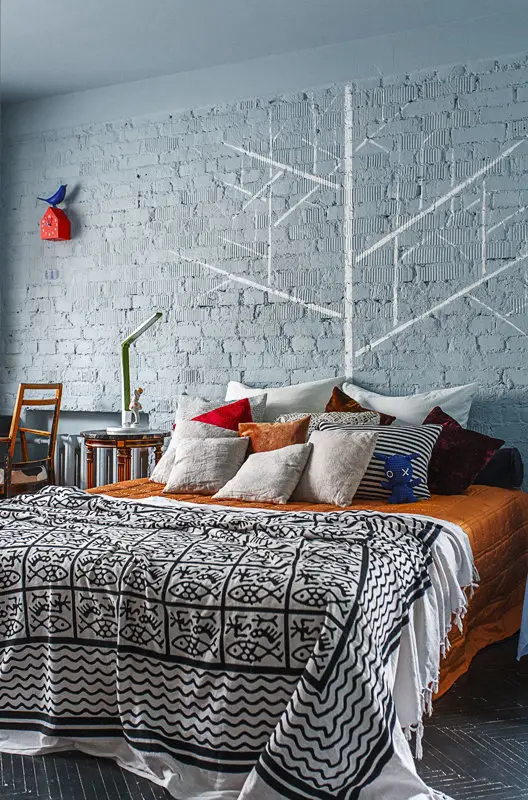 Are you considering changing your bed only because of the worn-out headboard? Is it worth spending money on that? There are many ideas for updating the bed headboard: from classic upholstery in the capiton technique to wooden planks. The absence of a headboard is also not a big problem. Help will come from contrasting wallpaper, original artwork, designer stickers, or ordinary paint.