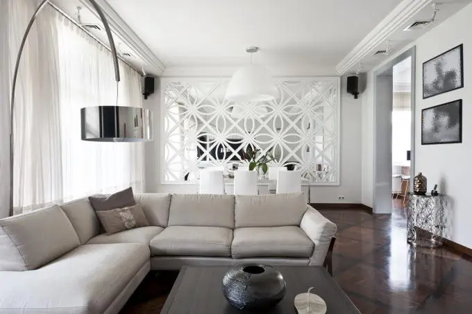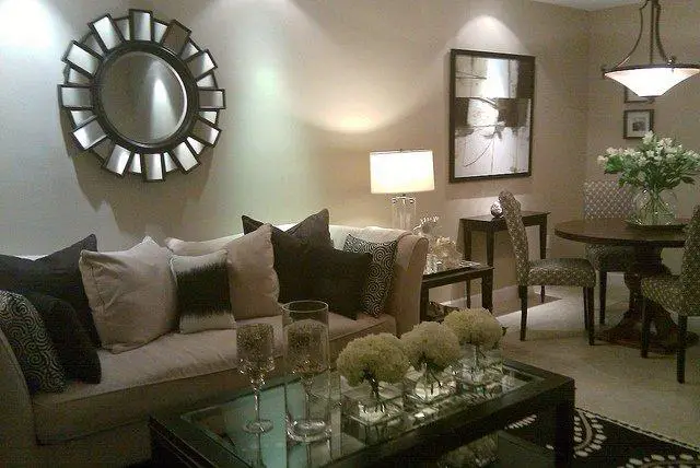 The shape and frame of a mirror should match the overall style of your living room’s interior.
