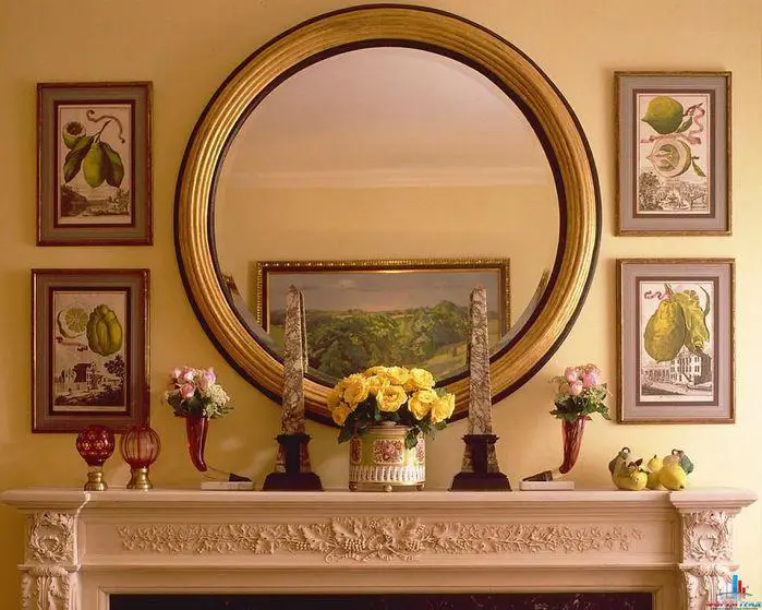 It’s common to place a mirror above a fireplace in a living room. While not a strict rule, it has become a long-standing tradition. A mirror above a fireplace, especially when paired with symmetrical lamps, adds romantic charm and helps define the room’s focal point.