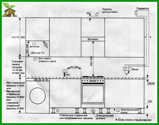 - The ceiling height in the kitchen must be at least 2.2 meters.