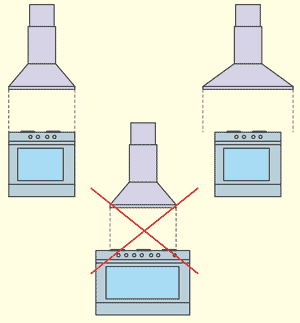 IMPORTANT! The exhaust fan must not be narrower than the installed stove.