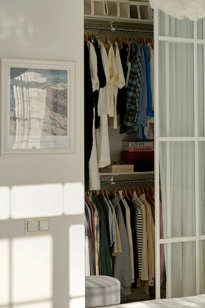 Review your wardrobe twice a year, storing out-of-season items in boxes or storage units. Summer dresses in winter and warm coats in summer are better stored away, freeing up space for current clothing.