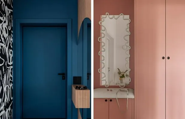 Near the window, a compact coffee table and a soft pouf were placed for quick breakfasts and snacks. The dining area was moved into the living room.