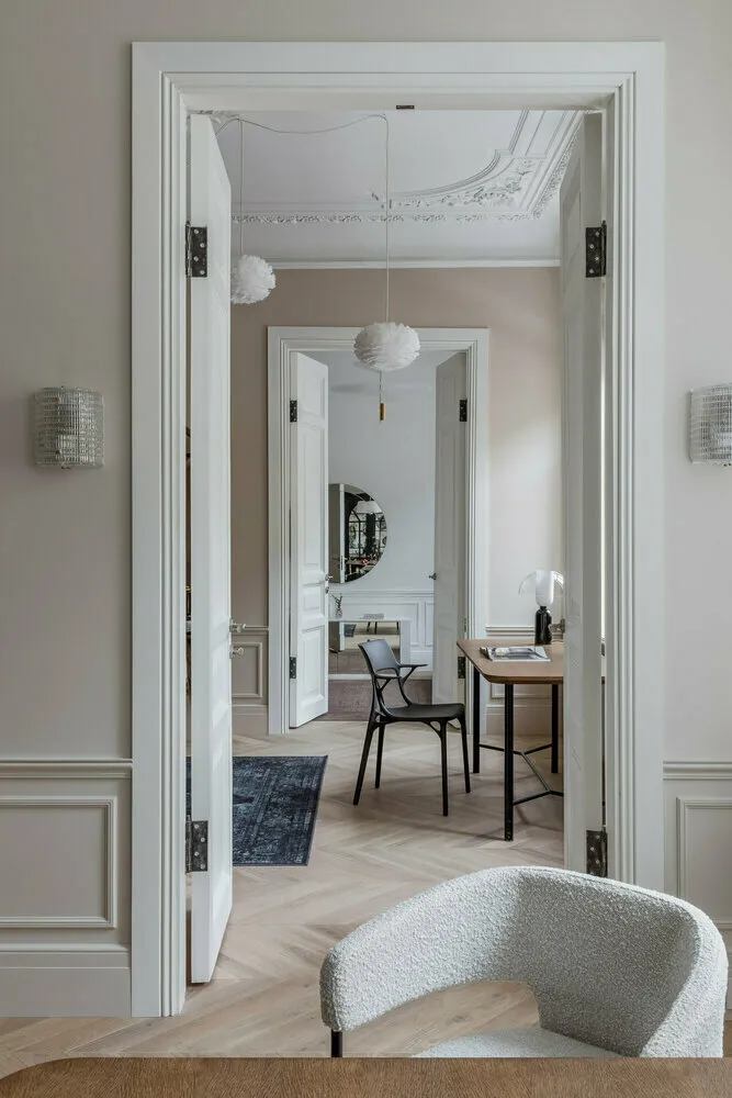 In designer Alla Kunicyna's project, aligned baseboards and door casings emphasize the geometry of openings and make the finish neat.