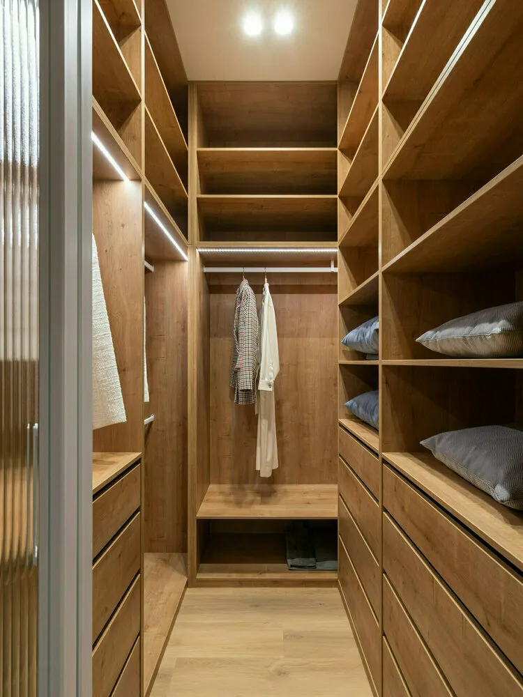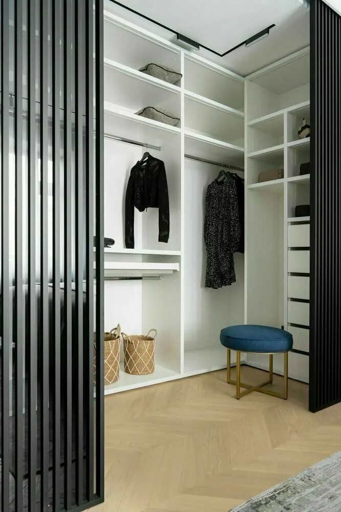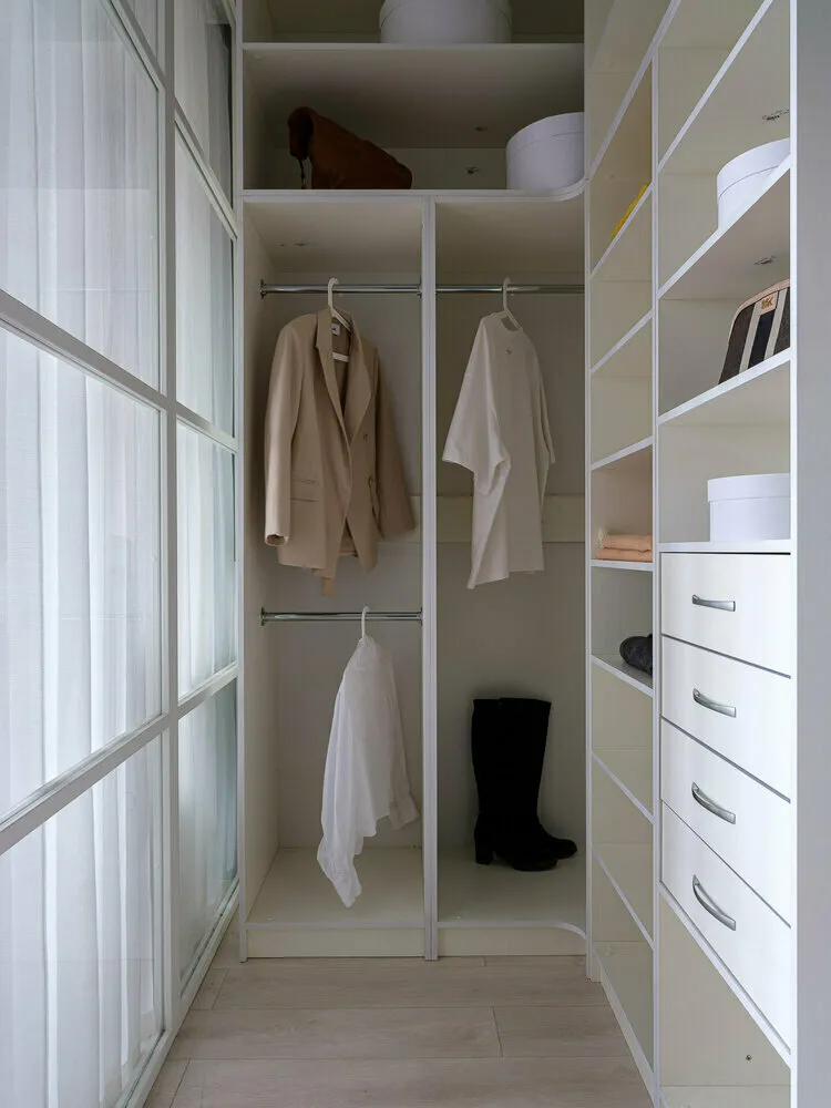 When everything is thrown into one pile, the wardrobe becomes chaotic. It's important to plan in advance where everyday clothes will be stored, organize seasonal storage, find space for shoes and accessories. The principle is simple: each category should have its place.