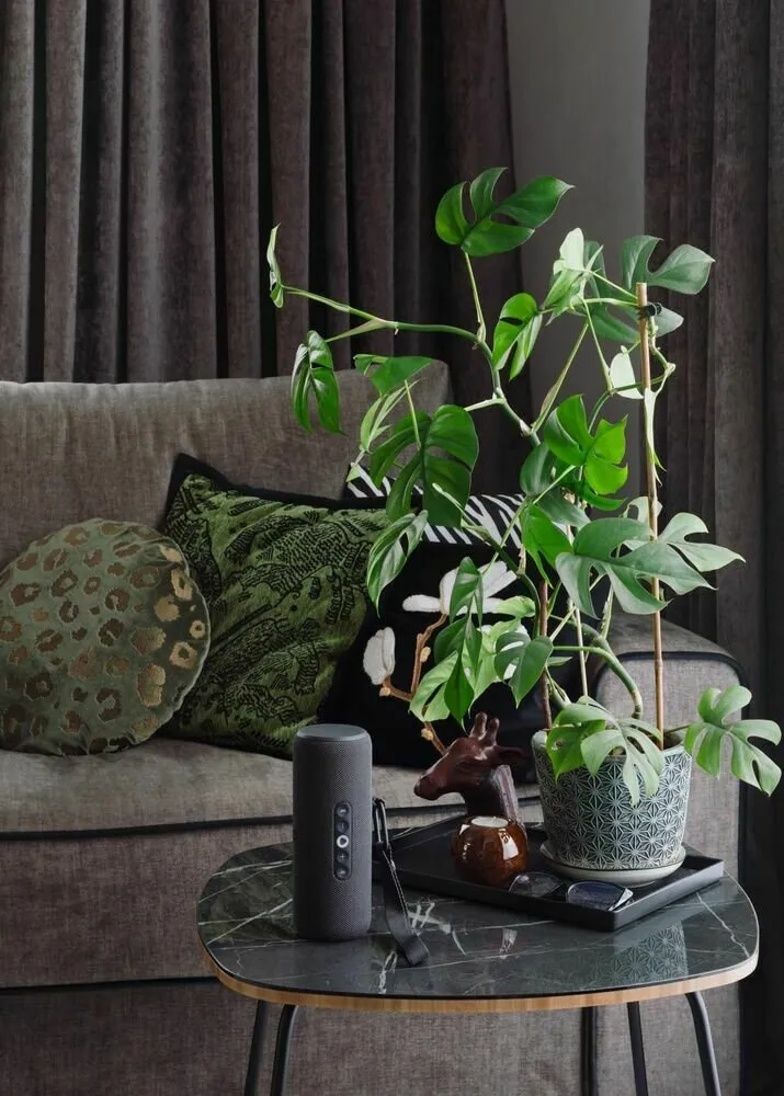 In Julia's interior, vintage items, including family heirlooms, were successfully combined with modern technological solutions. One such solution was the smart portable Yandex Station Street speaker. Connected to Wi-Fi, it allows interaction with Alice via voice commands, just like with all other Yandex Stations. However, thanks to the built-in battery, it can be easily taken with you to the outdoor relaxation area.