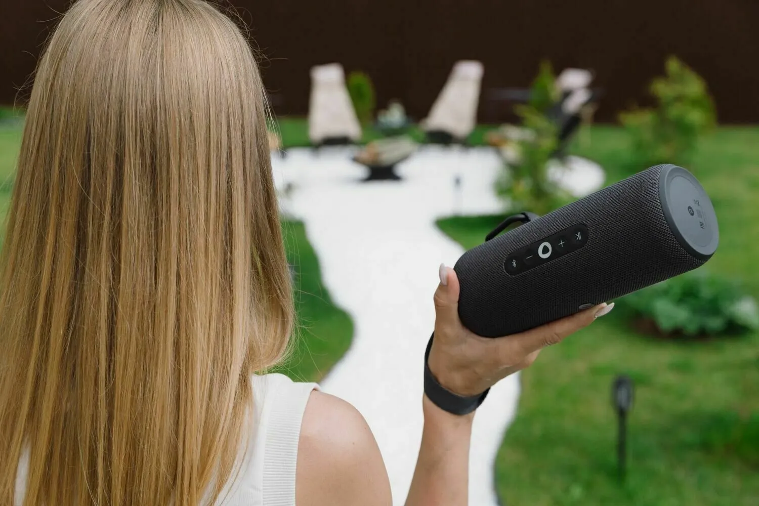 Outside, Julia usually uses it for music listening by connecting via Bluetooth to her smartphone. In this case, voice control of the music remains functional. This is convenient because physical interaction with the phone or buttons is not required—just speak a command. This feature enables music control even when hands are occupied or the speaker is not in hand.