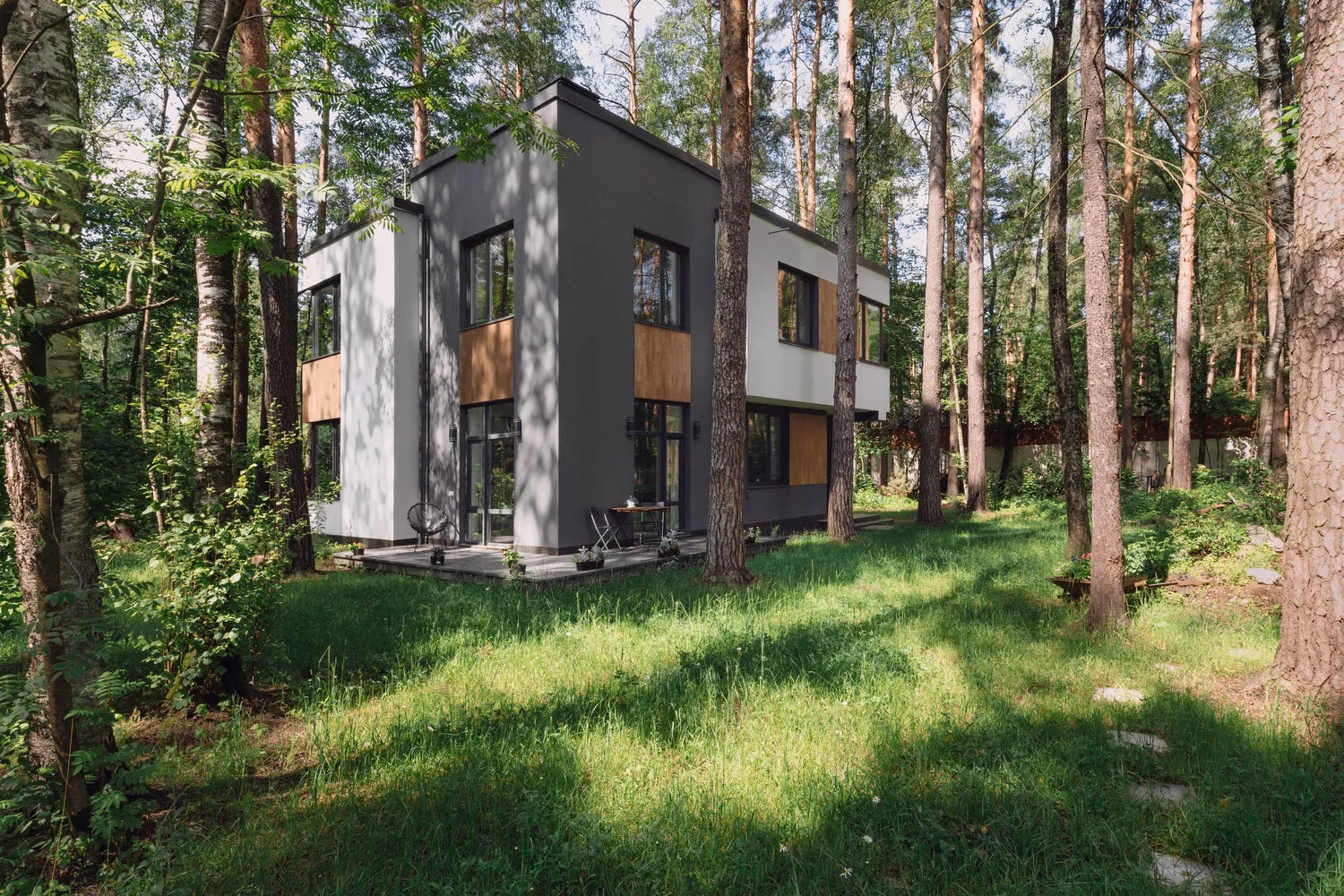 The total area of the house is 150 sq. m, and it was built from scratch. First, Irina developed the layout and calculated how many square meters were needed for comfortable living to avoid unnecessary rooms. Then she handed the plan along with references to the architect. During construction, the task was to minimize damage to trees. The house literally fits among the pines, which largely determined its shape.