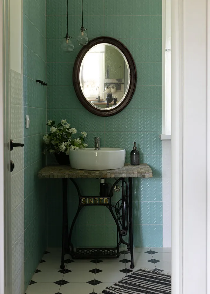 Stunning Green-Toned Bathroom with Art Deco Touches