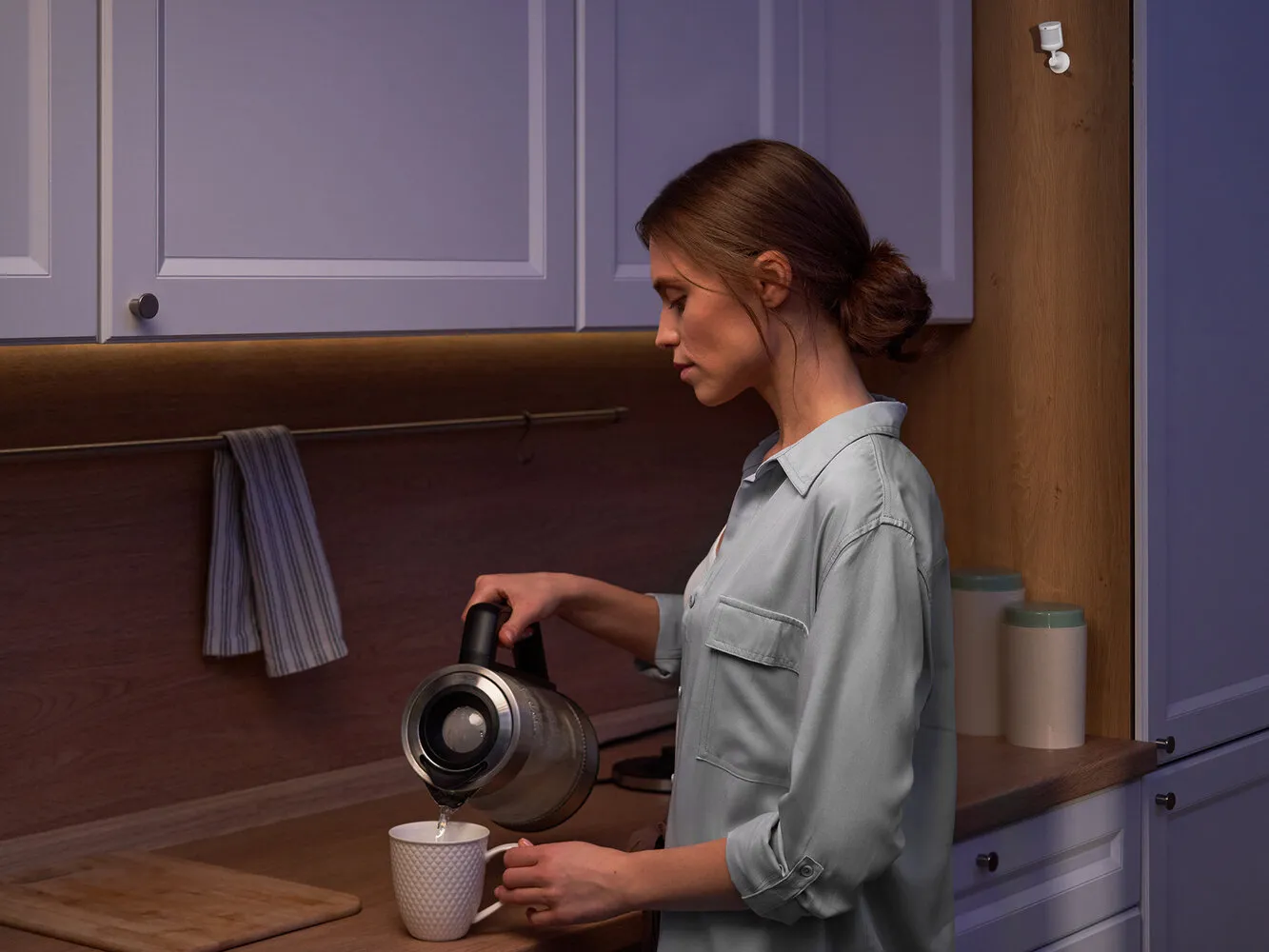 Motion sensors make life more convenient and safer at the same time. For example, at night when you get up, lights will automatically turn on as you move and then turn off by themselves. When leaving the house, you can activate a security scenario: the sensor will instantly notify you if it detects suspicious movement while you're away.
