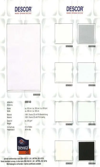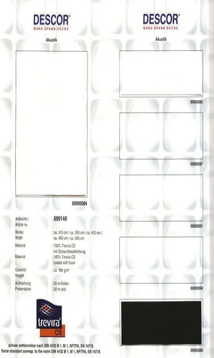 - DESCOR Trevira CS Premium white (optical, cold) – article 050 – width 3.1m; 4.1m; 5.1m