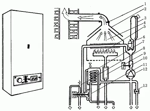 Wall-mounted and floor-standing boilers have a decent alternative - a wall-mounted gas boiler. Unlike its peers, this boiler does not require a chimney or high installation costs. This energy-independent heat generator is designed for autonomous heating and hot water supply in small apartments. The maximum power of such units is 16 kW (a typical installation manual for this type of boiler and its device are provided below).