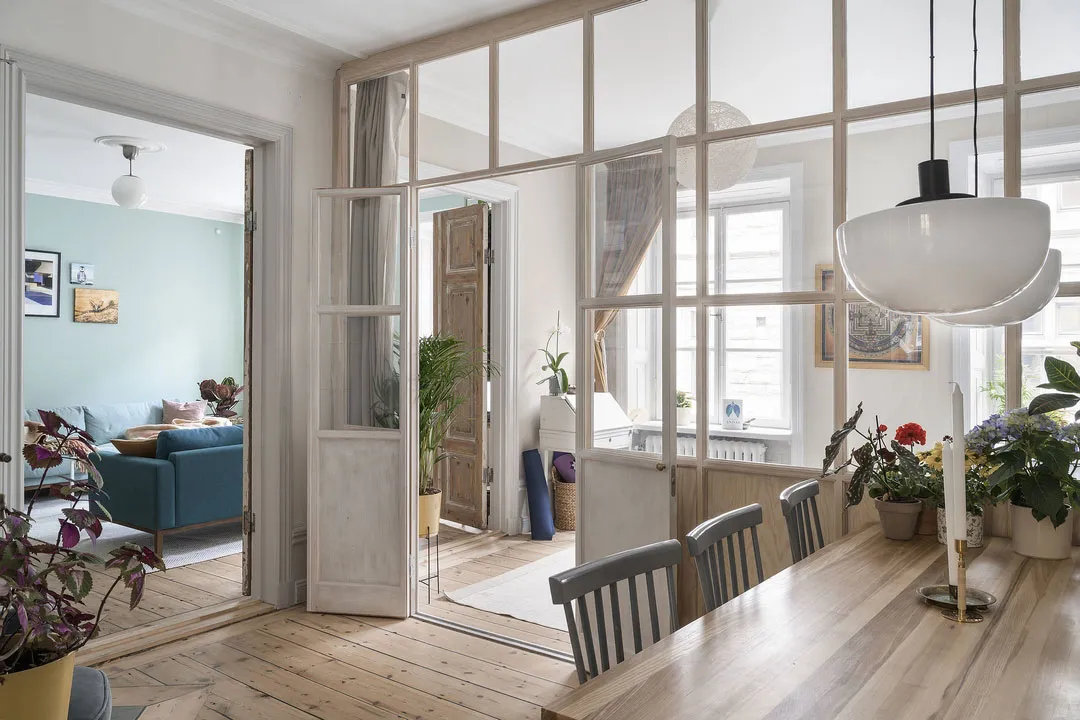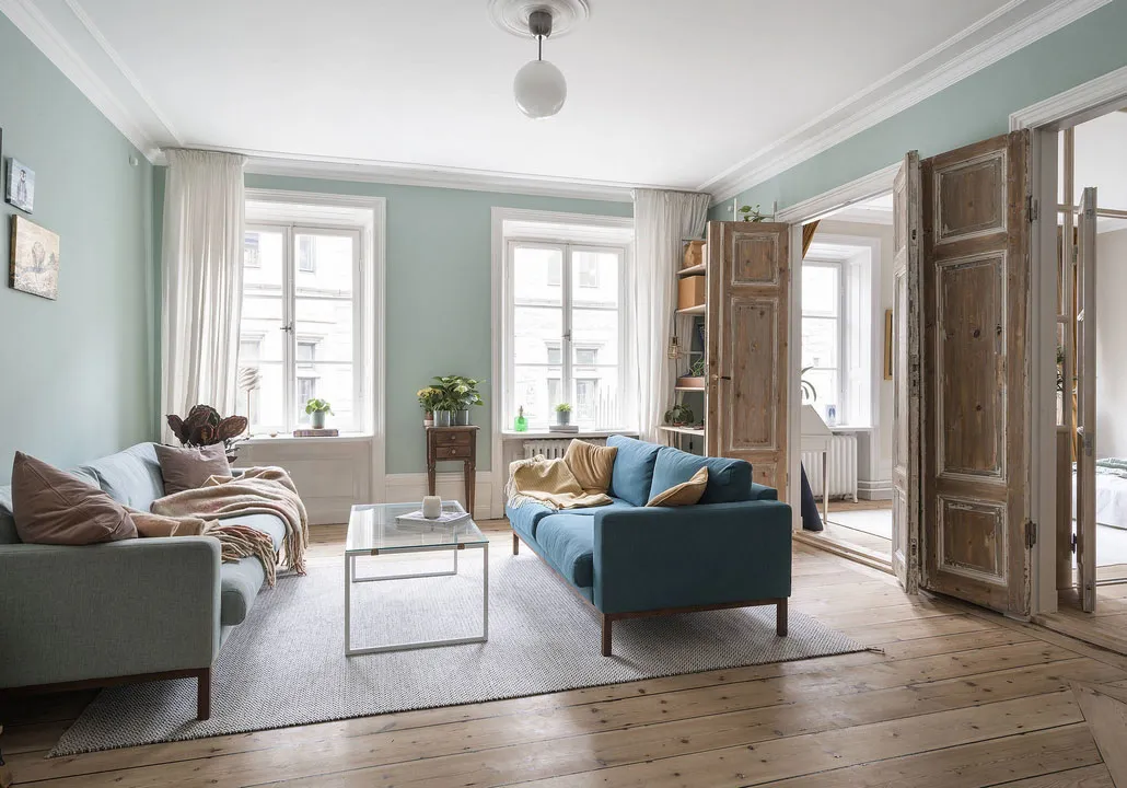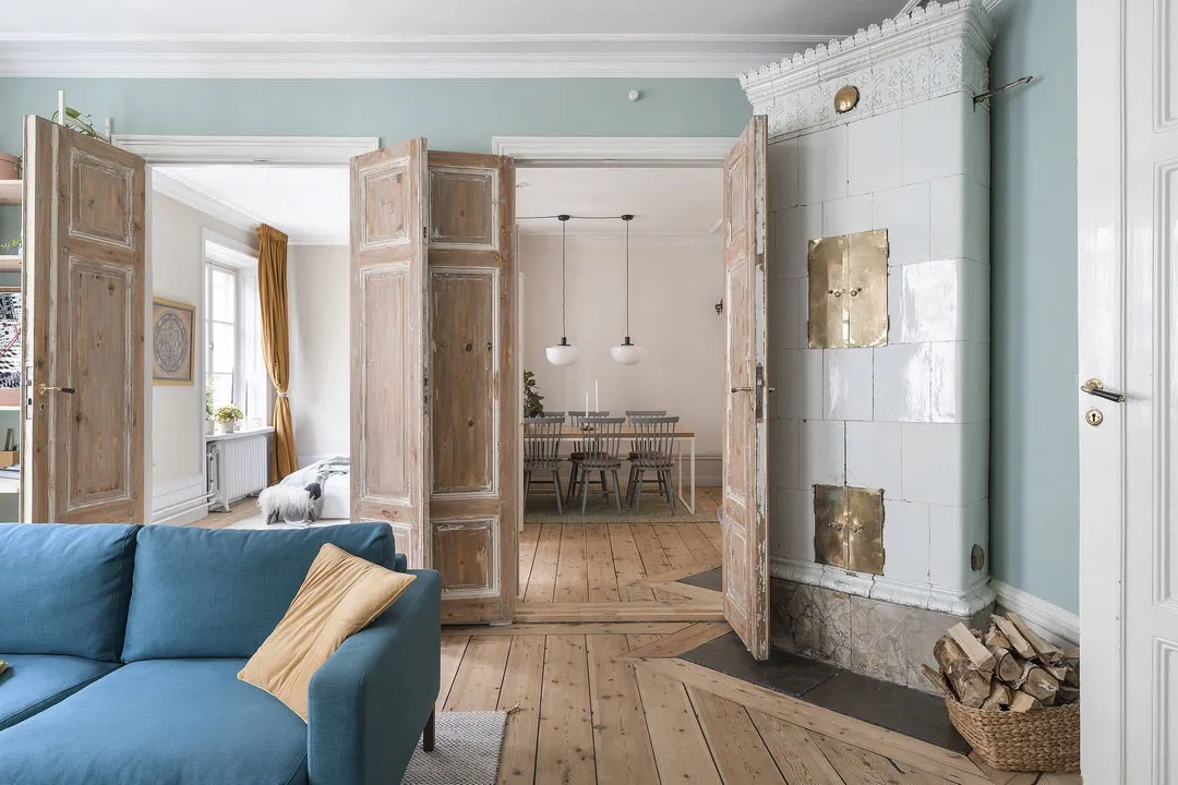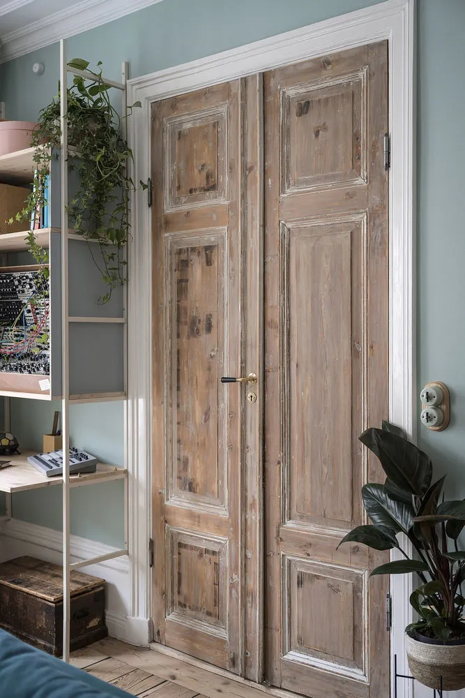 Blue Walls and Vintage Doors: An Interesting Scandinavian Apartment