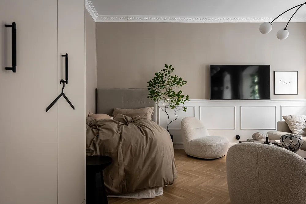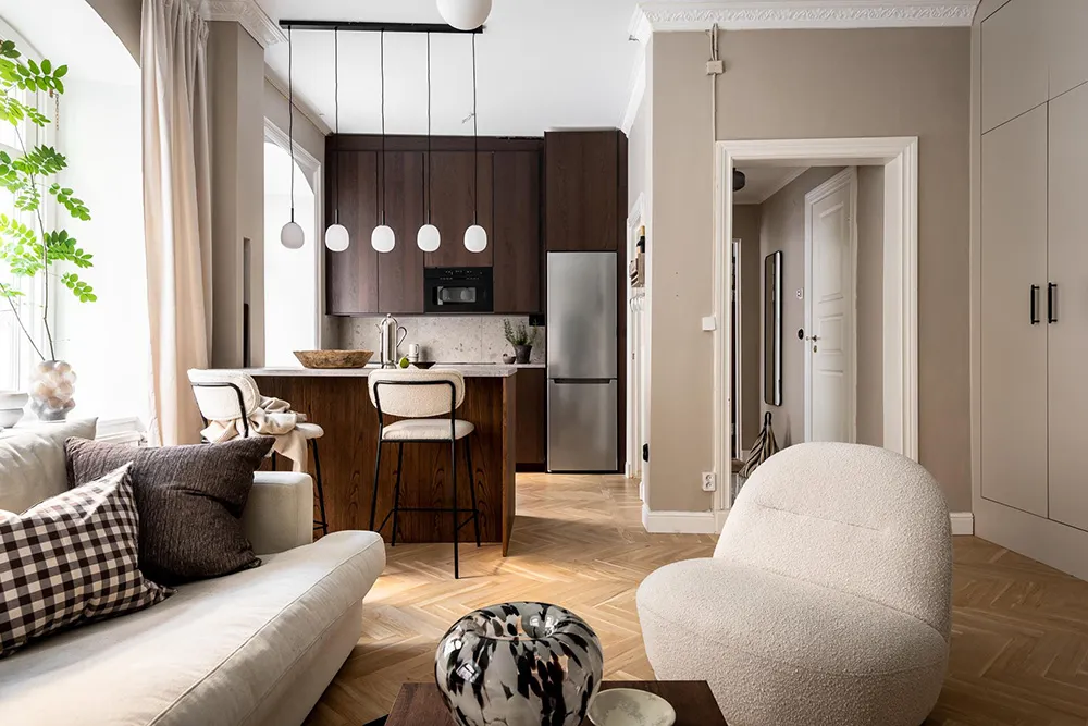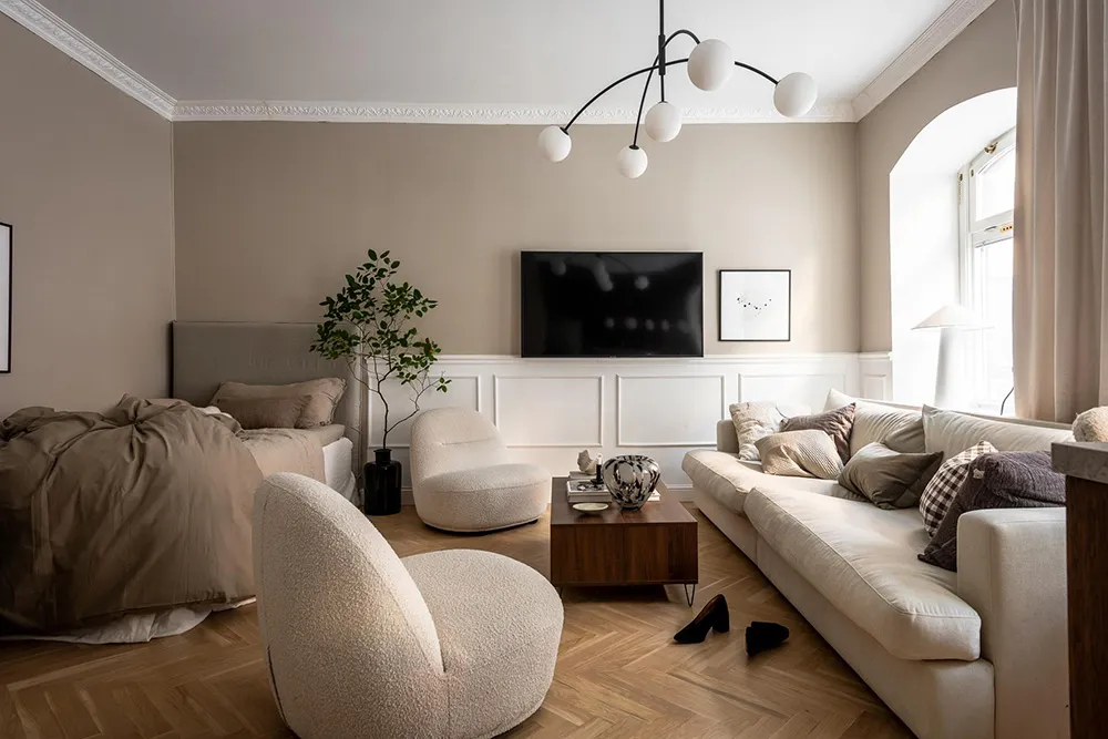 Modern elegance and beige tones: studio apartment in Göteborg (35 sqm)
