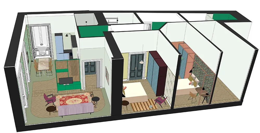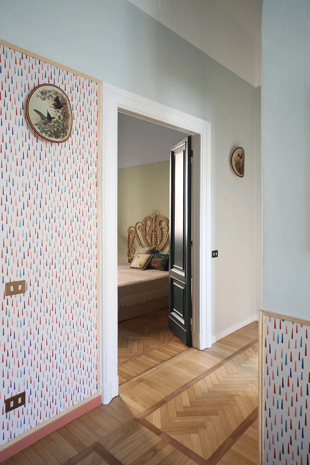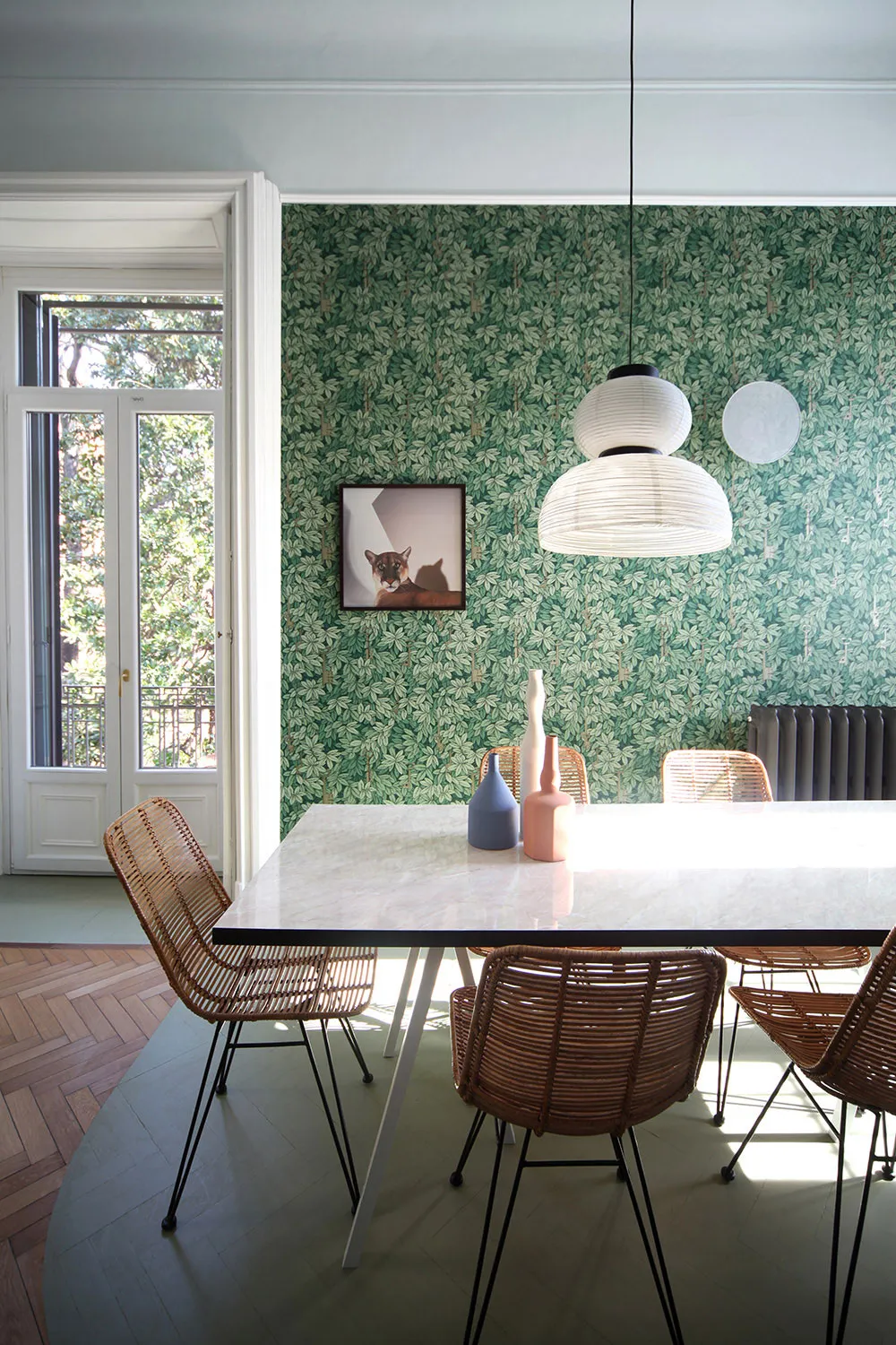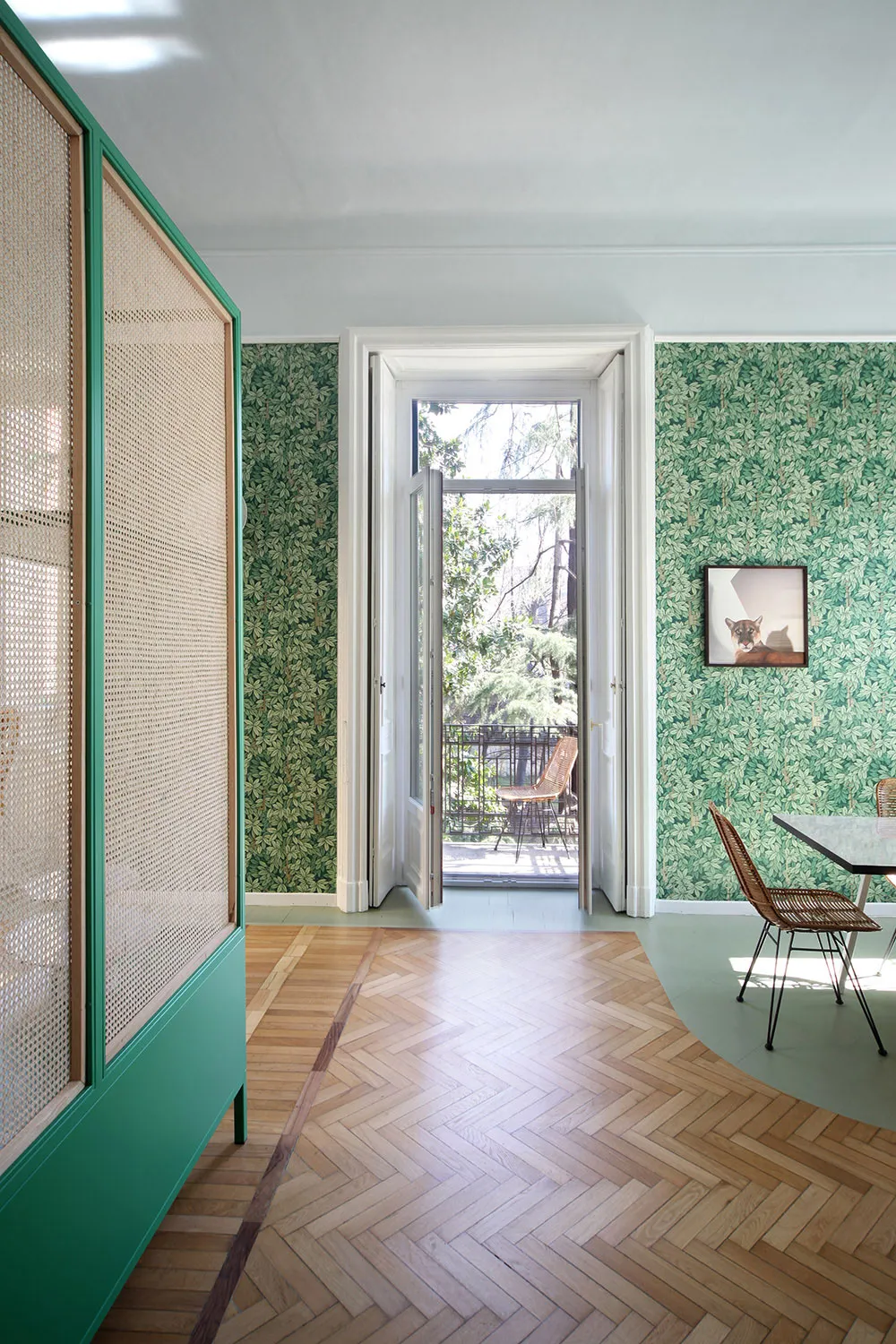 Green Walls and Floral Wallpaper: Updated Apartments in the Center of Milan