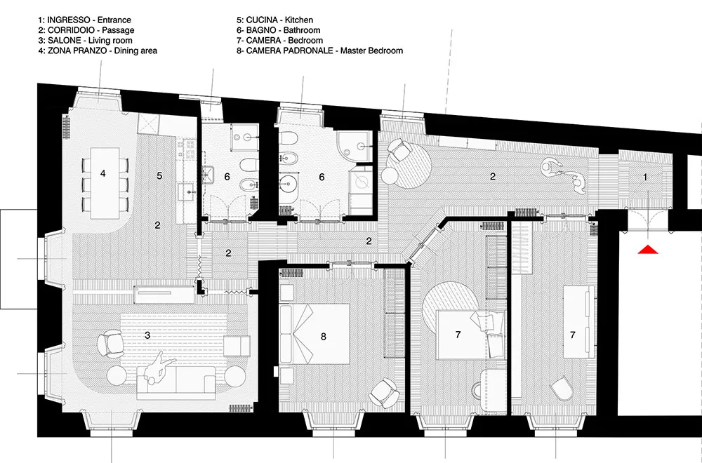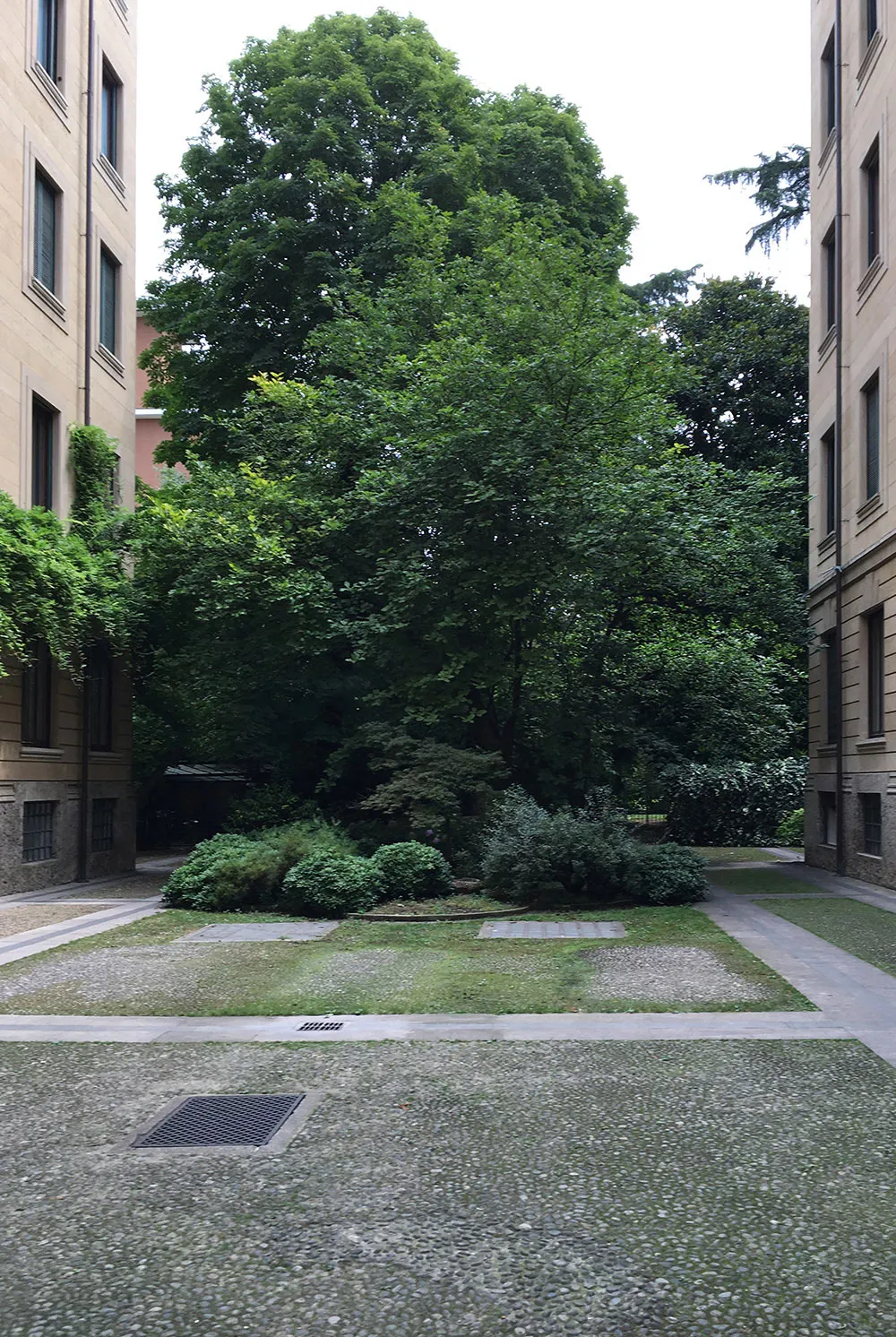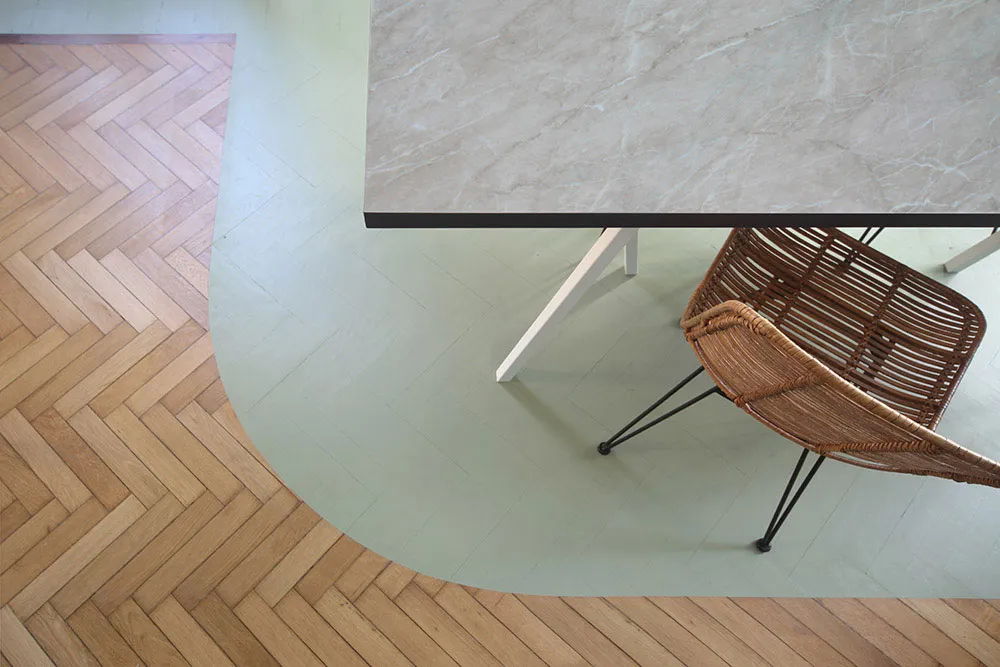 The view from the windows of this apartment in a historic building in the center of Milan influenced the interior design.