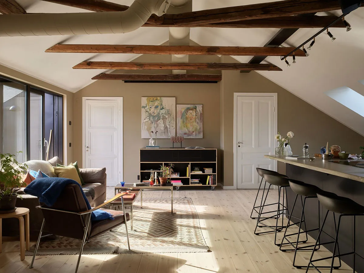 Cozy attic with industrial elements