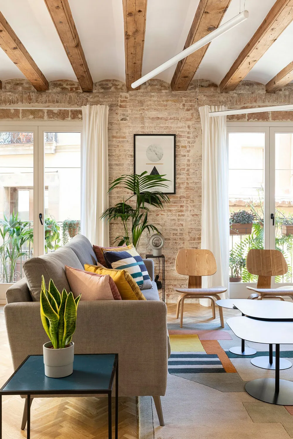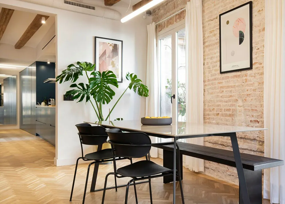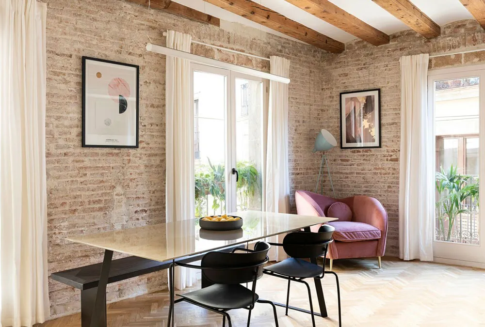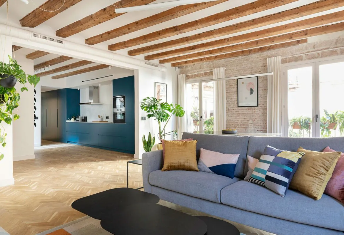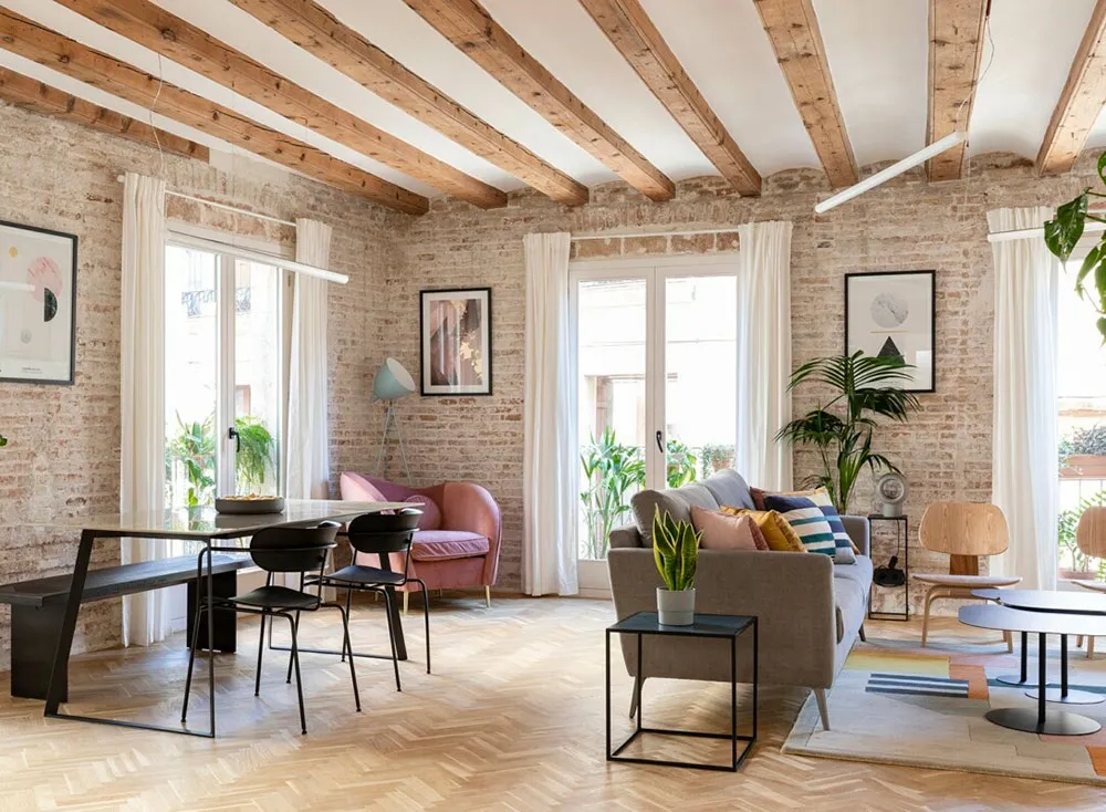 Stylish rental apartment in Barcelona with beams and brick walls