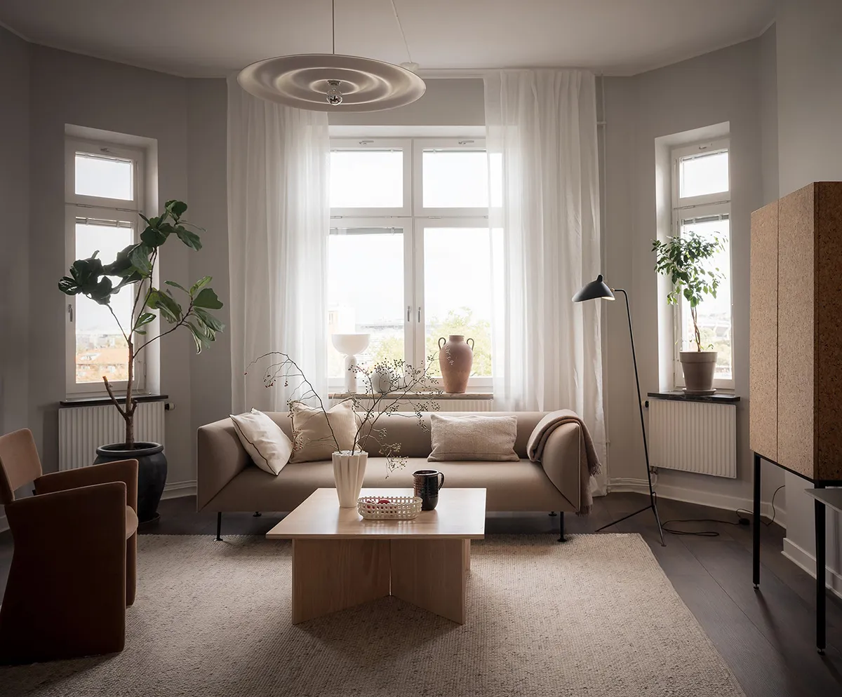 High ceilings and refined modern decor: small apartment in Goteborg (49 sqm)