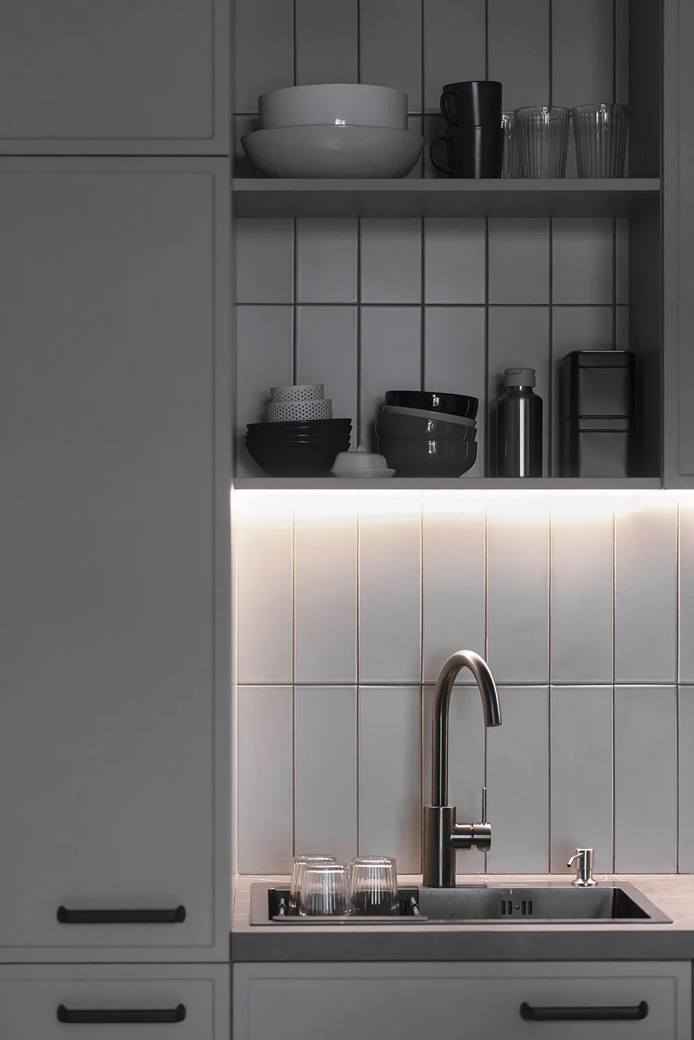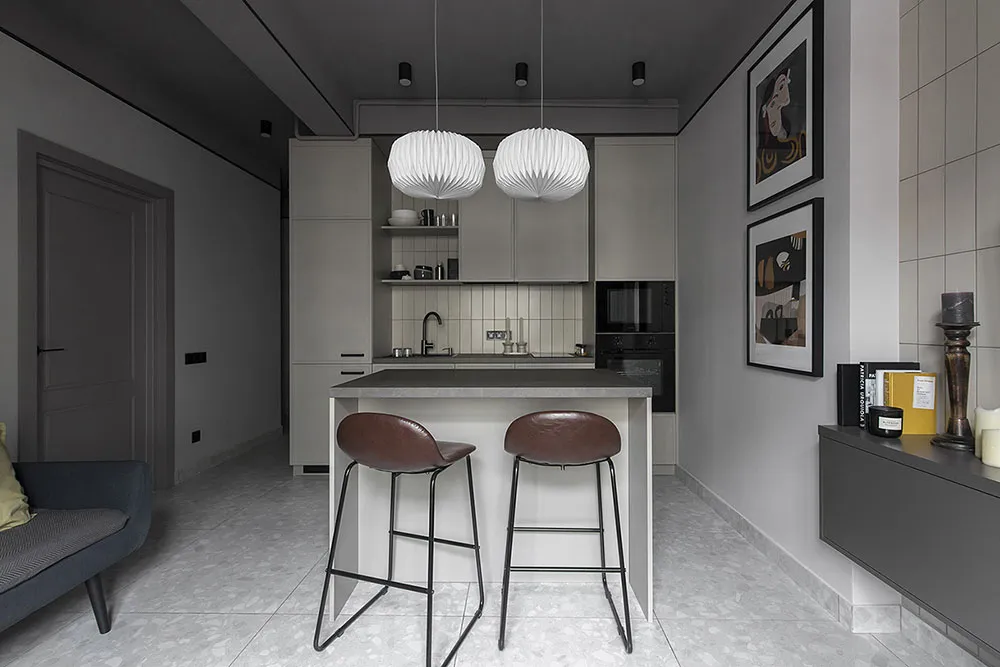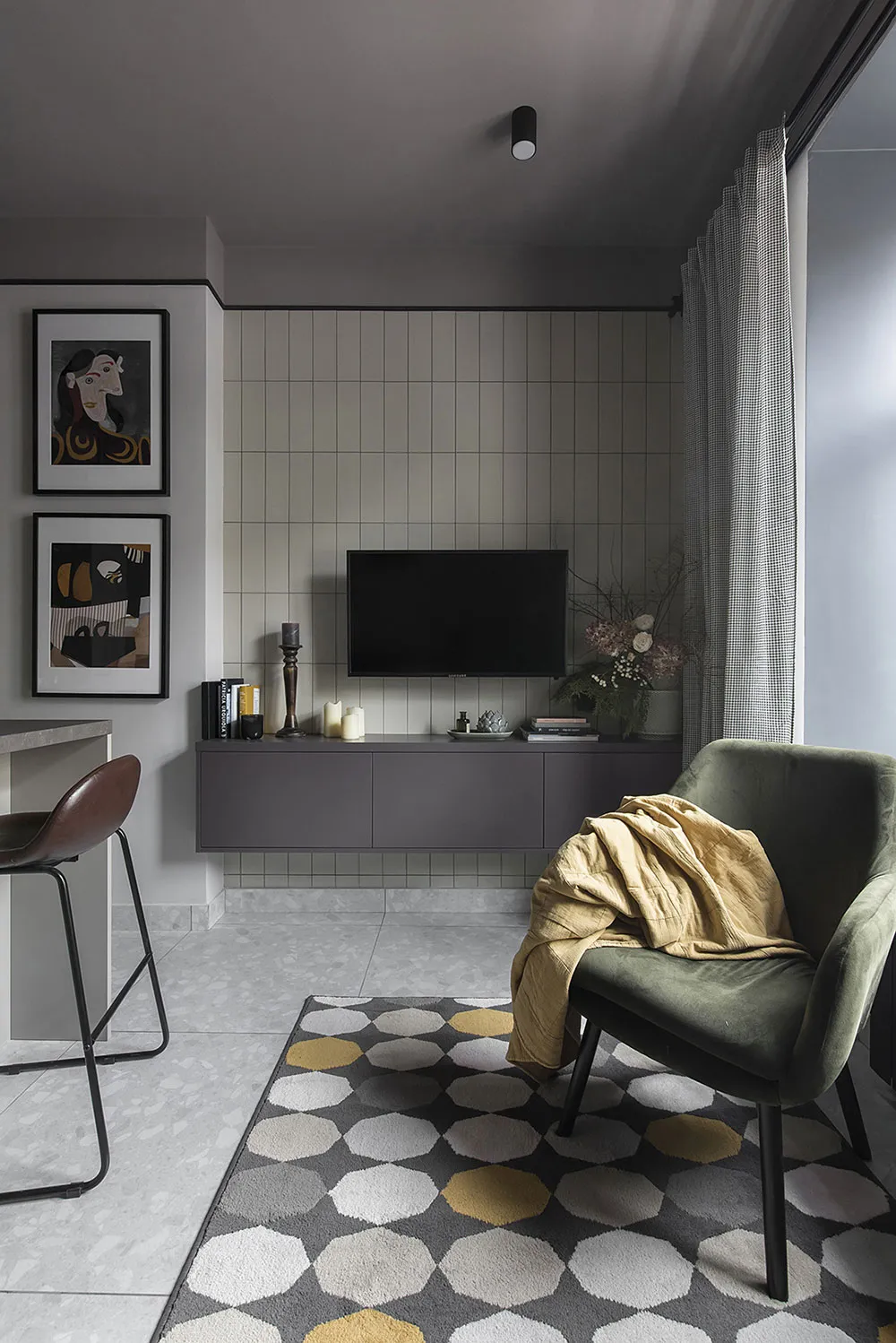 Stylish Gray Tones and Vertical Tiles: Small Apartment in Kyiv (40 sq. m)