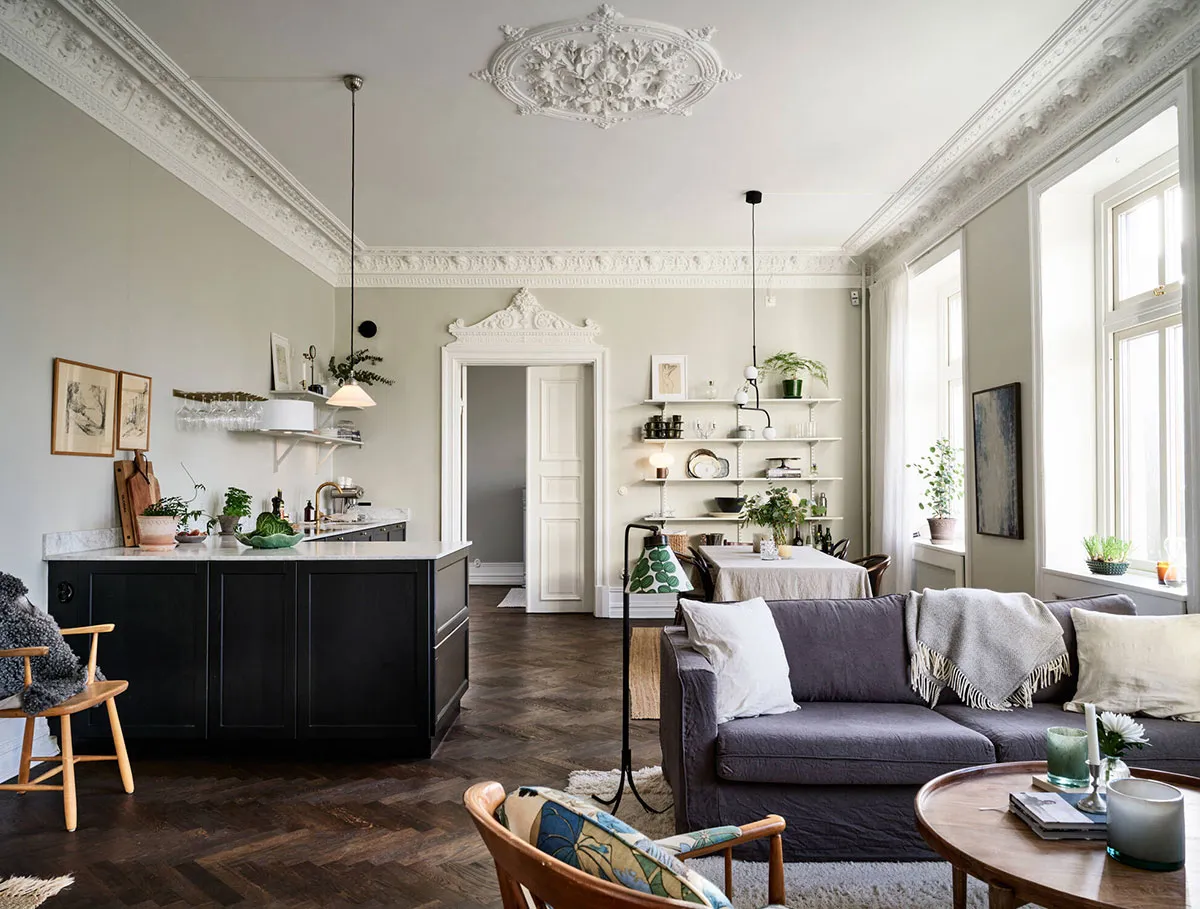 Open Layout and Luxurious Moldings: Characterful Apartment in Gothenburg (76 sqm)