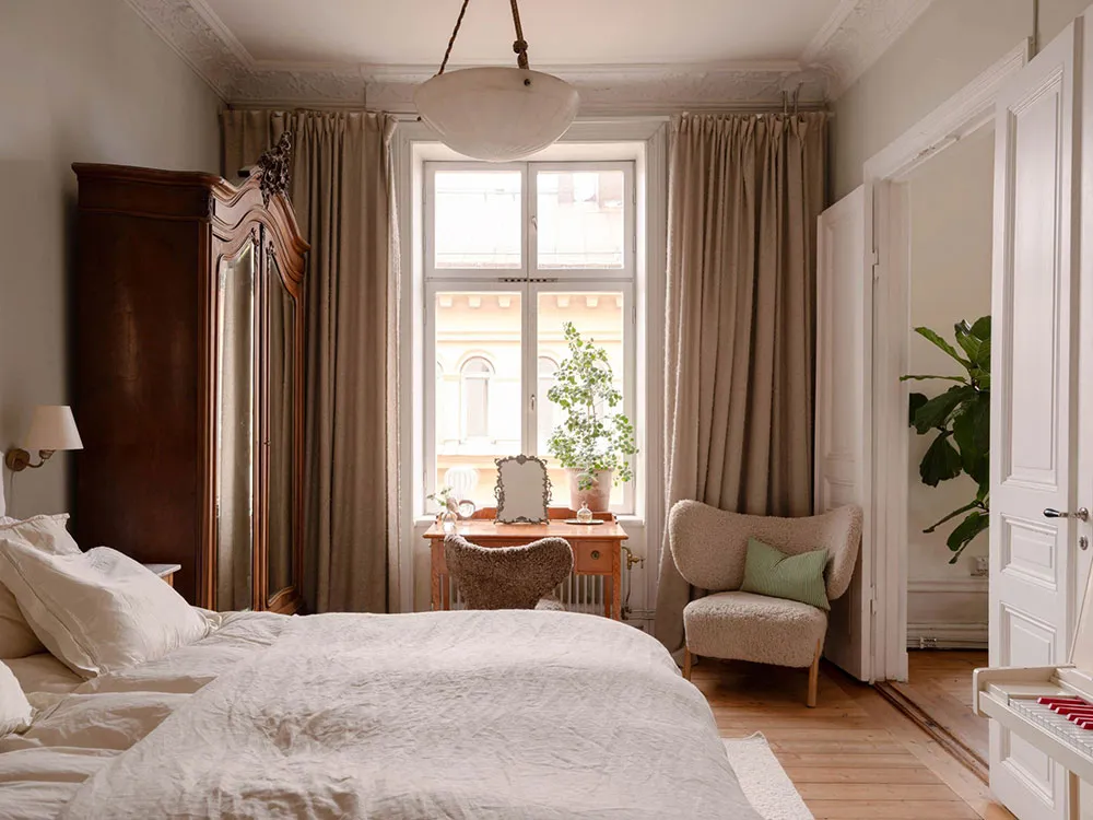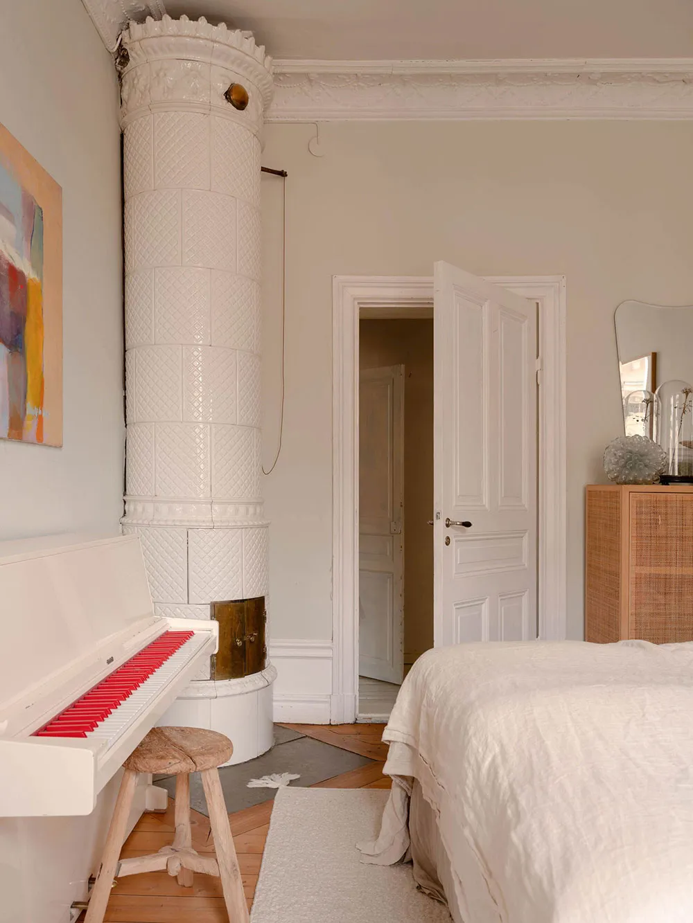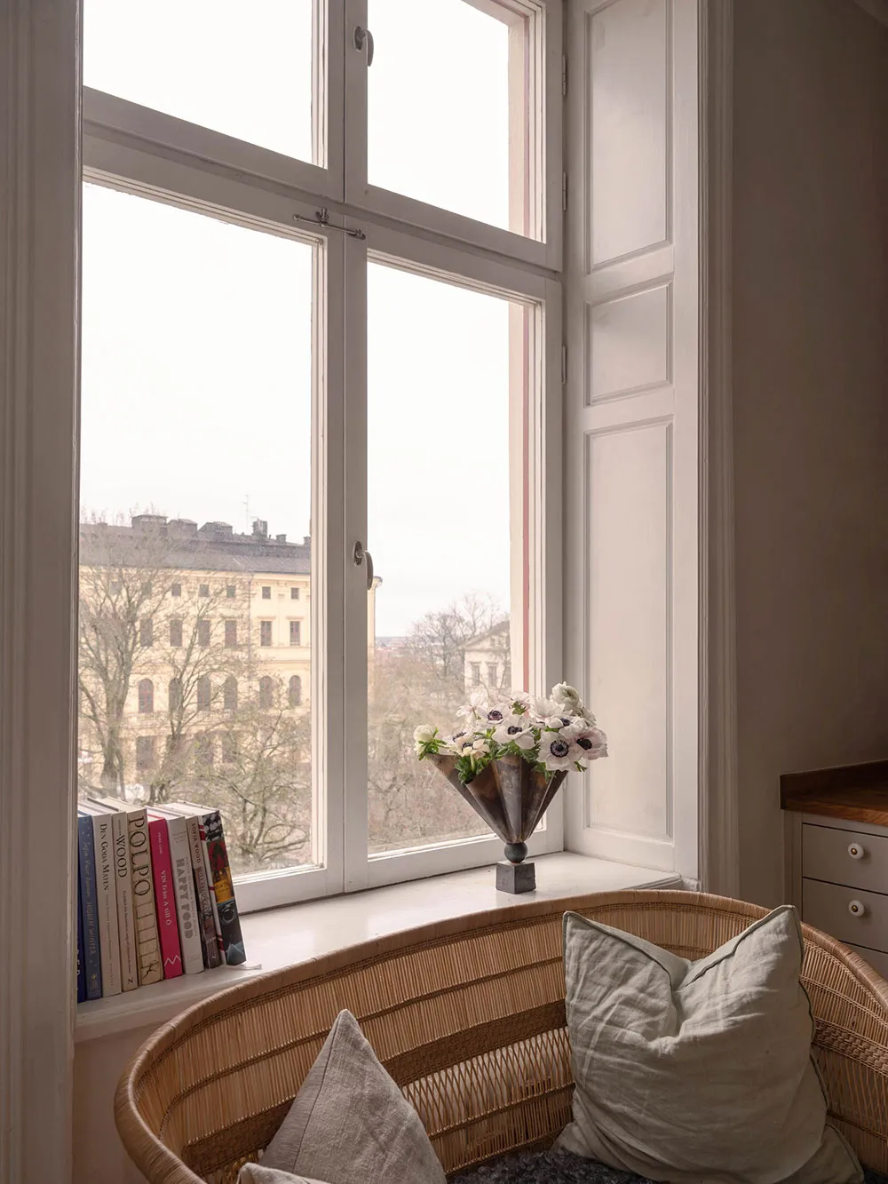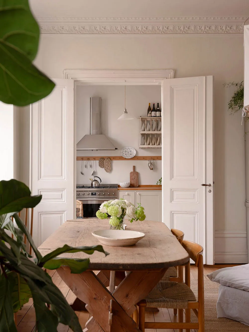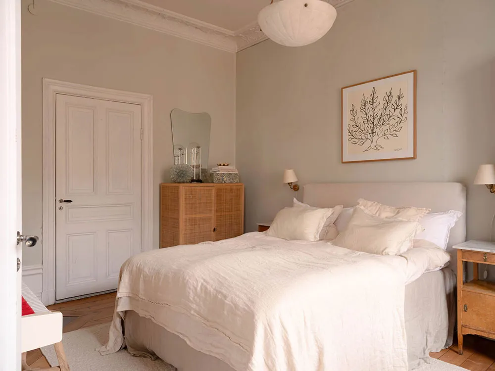 This apartment in an old Stockholm house is a pleasant mix of vintage details, Scandinavian decor, and soft pastel accents.
