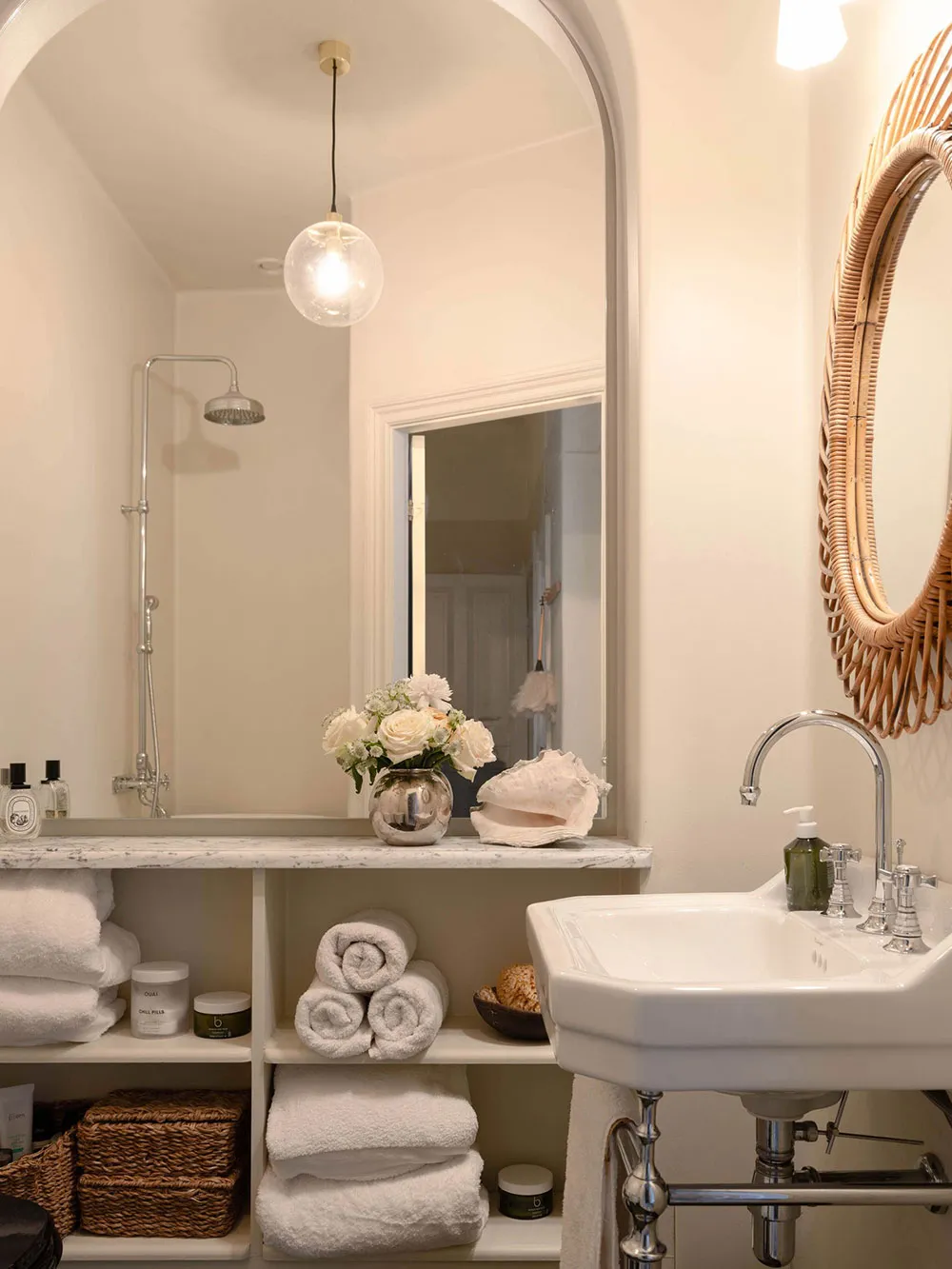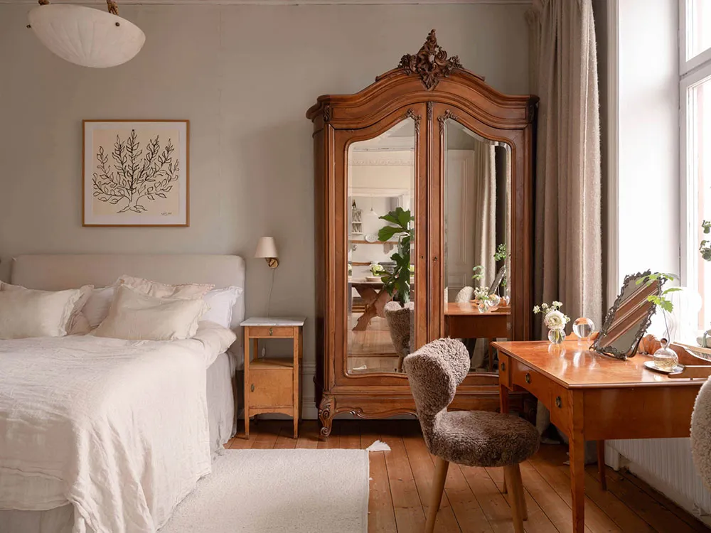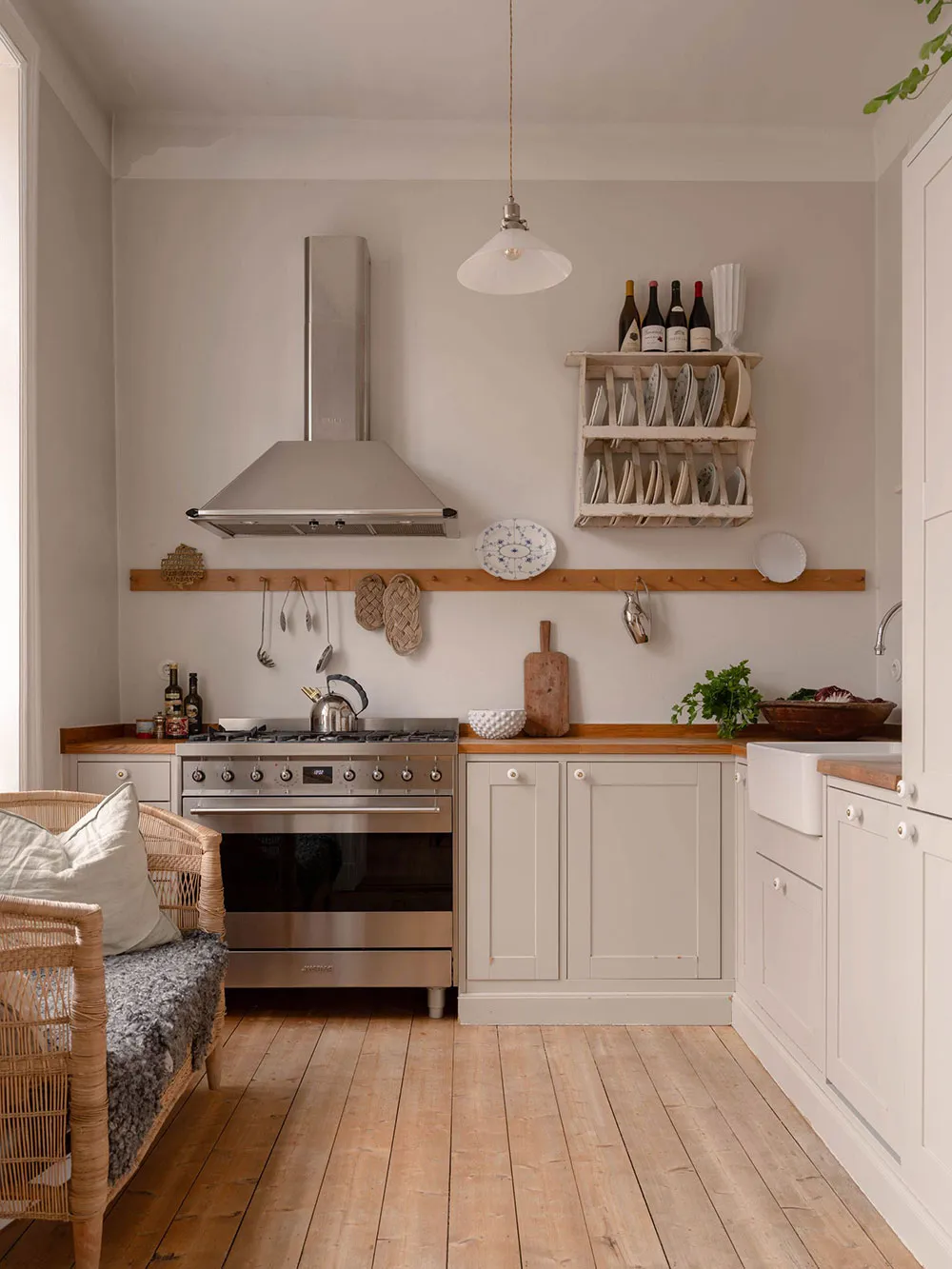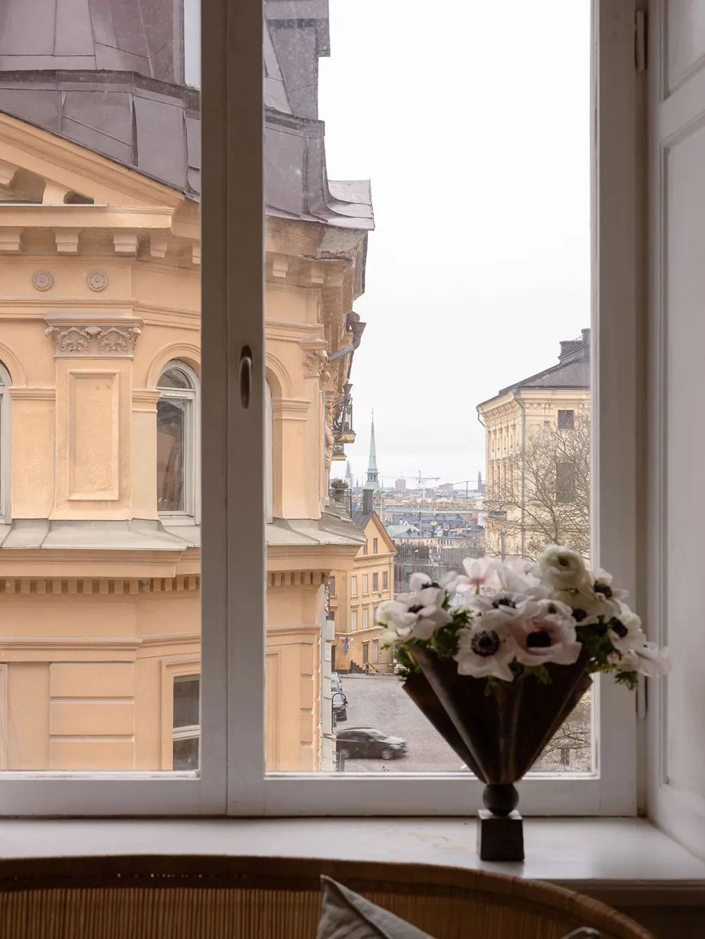 This apartment in an old Stockholm house is a pleasant mix of vintage details, Scandinavian decor, and soft pastel accents.