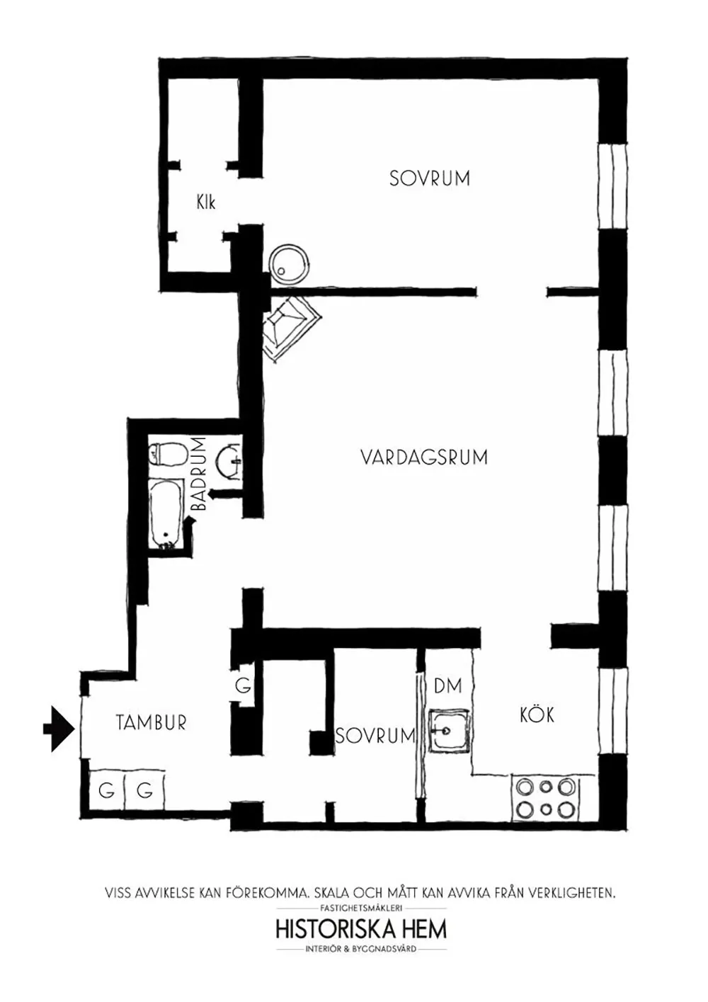 Sloped Ceilings, Brick Wall, and Walk-in Closet: Interesting Loft in Sweden (42 sqm)
