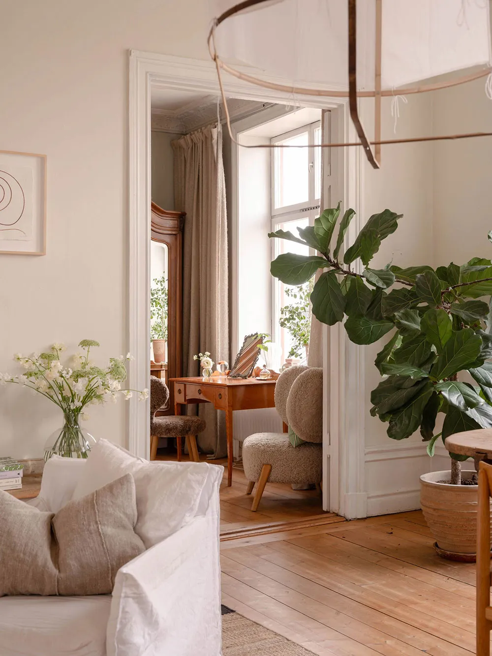 Neutral gamma and calm mood: two-story apartment in Gothenburg's suburbs