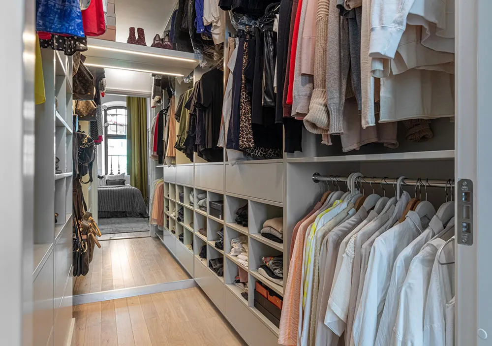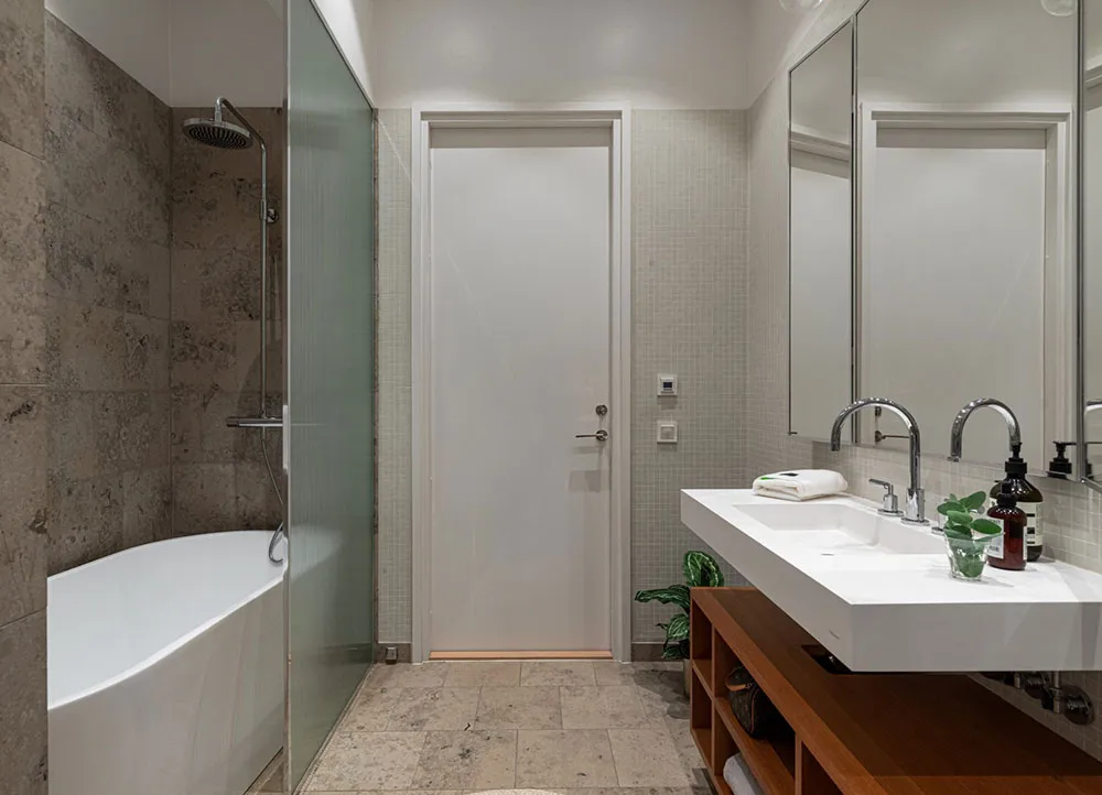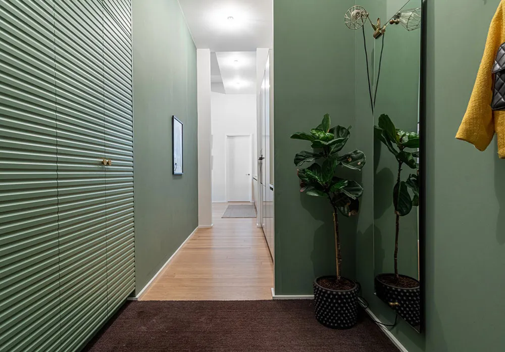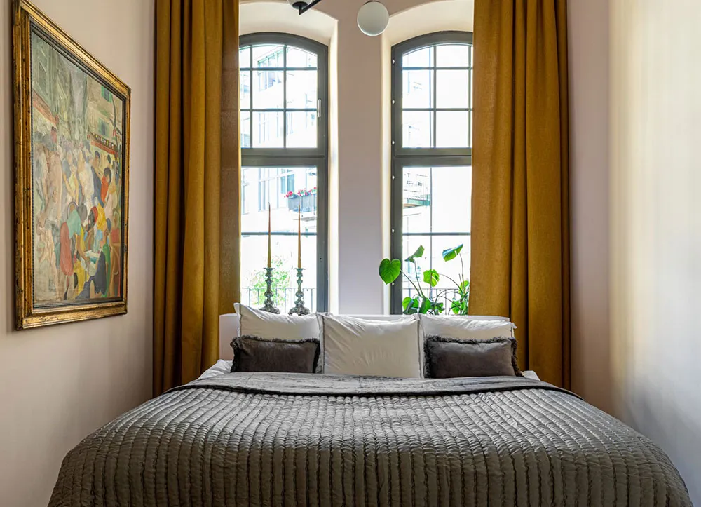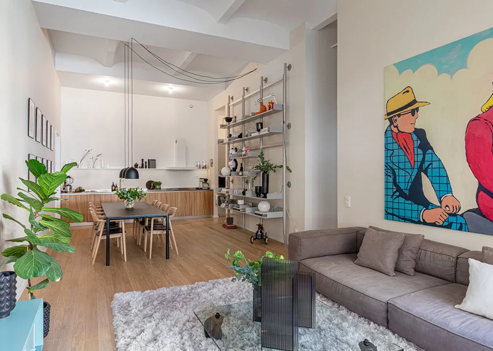 The coved ceilings in the interior of this apartment in Stockholm immediately give a hint — the living space is located in a former industrial building.