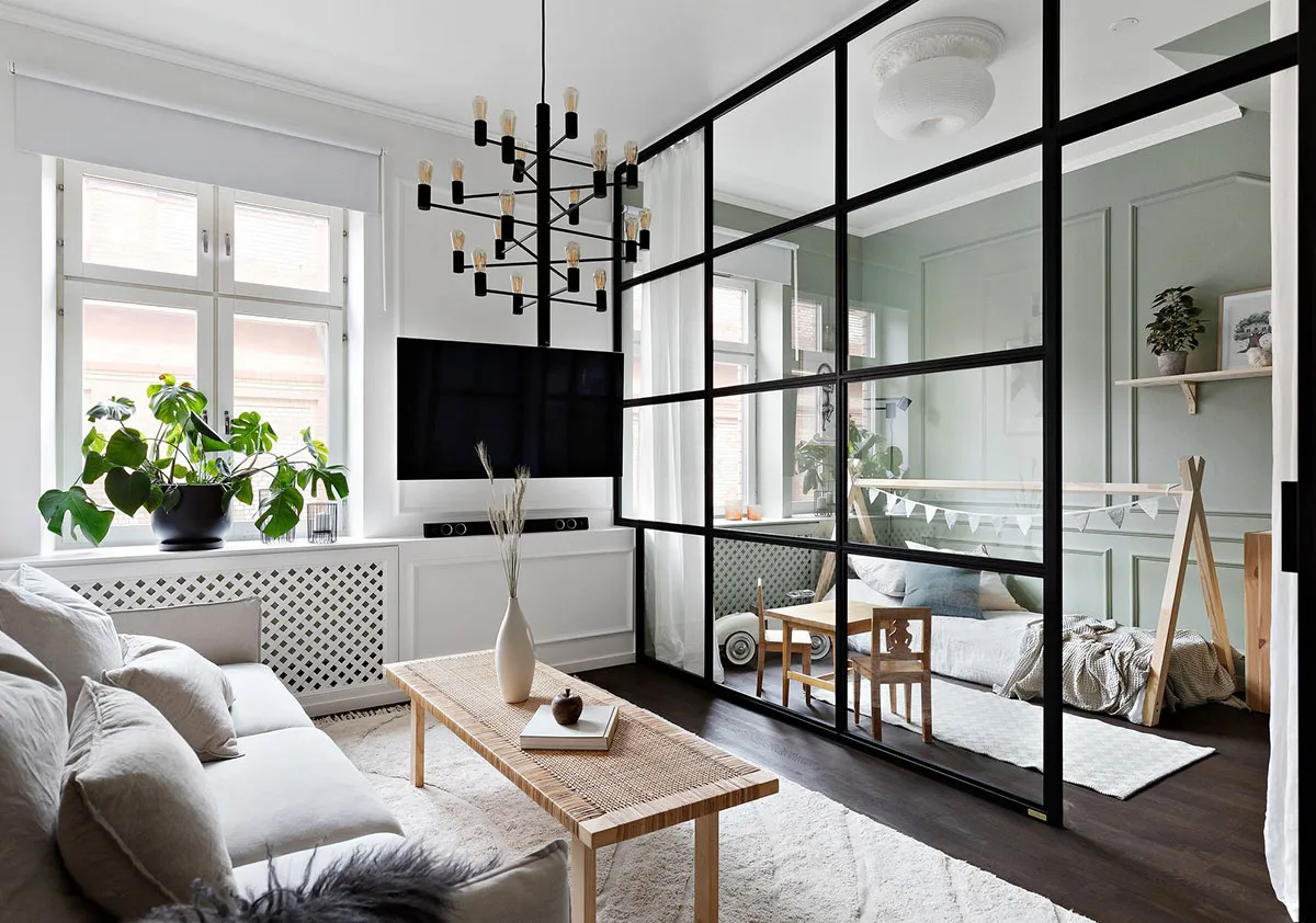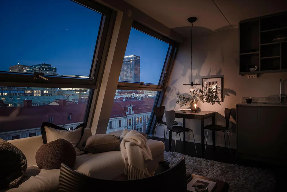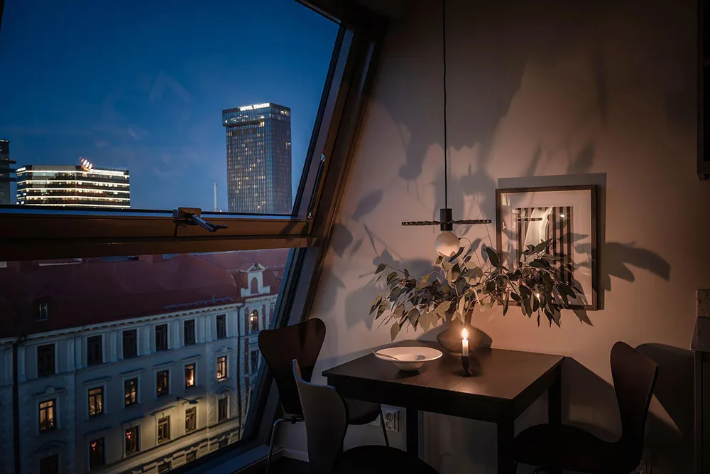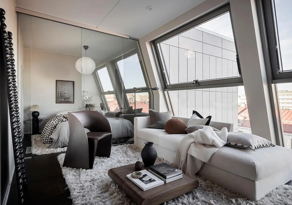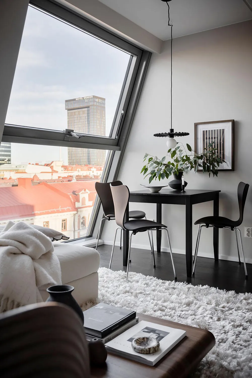 There are not many residential glass skyscrapers in Sweden's major cities (you can count them on the fingers of one hand), so interiors with glass walls are not the most common option in these parts.