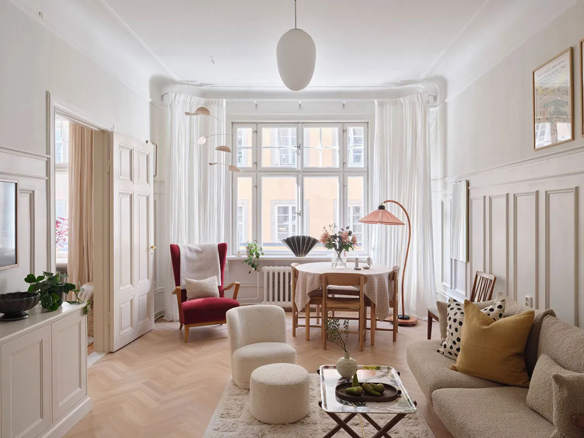 Soft Tones and Floral Motifs in the Design of a Small Apartment in Sweden (55 sqm)