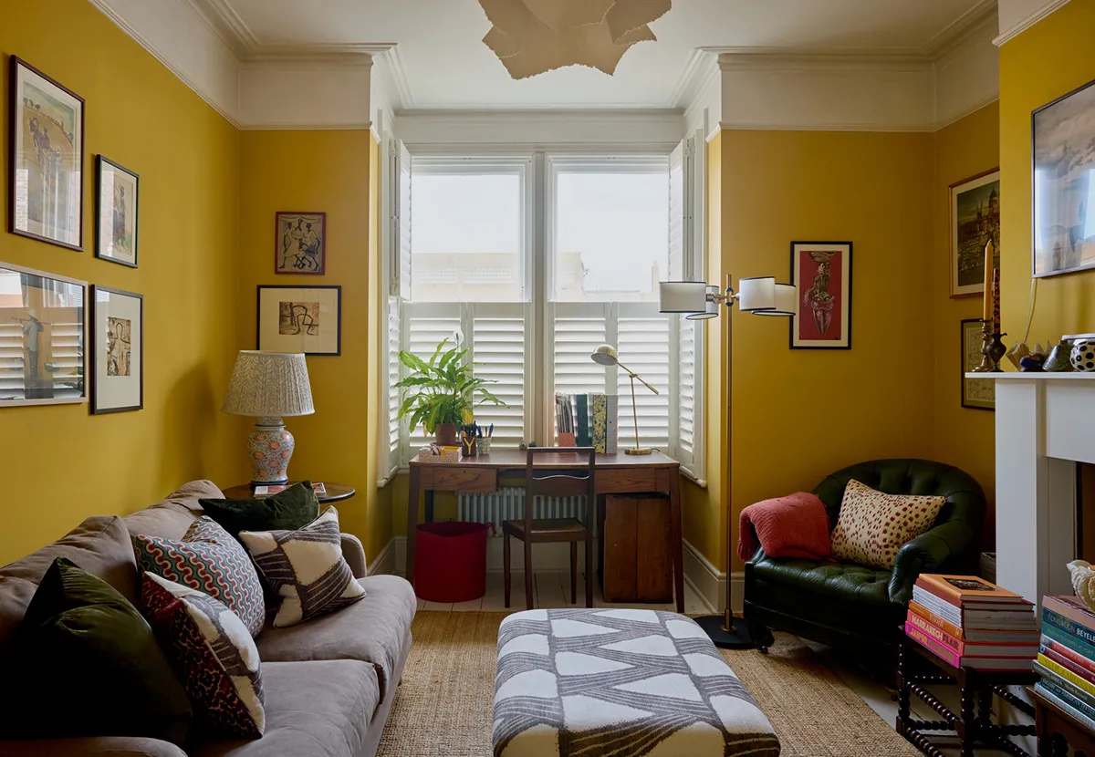 Vibrant English Interior with Yellow Living Room