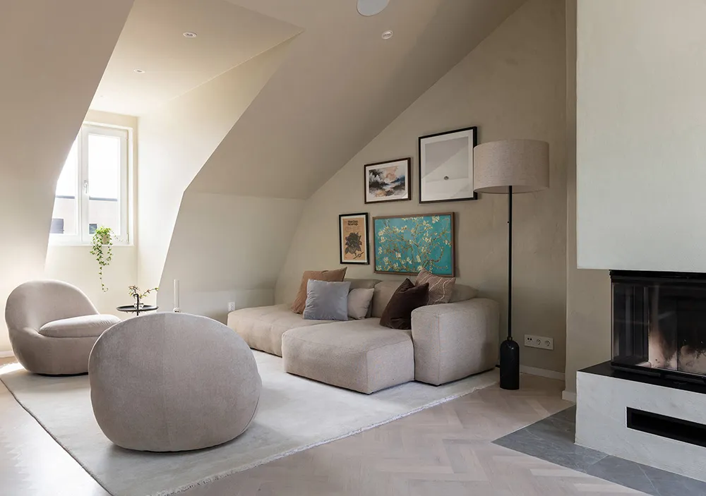 Cozy Sand-Toned Mansard in Sweden